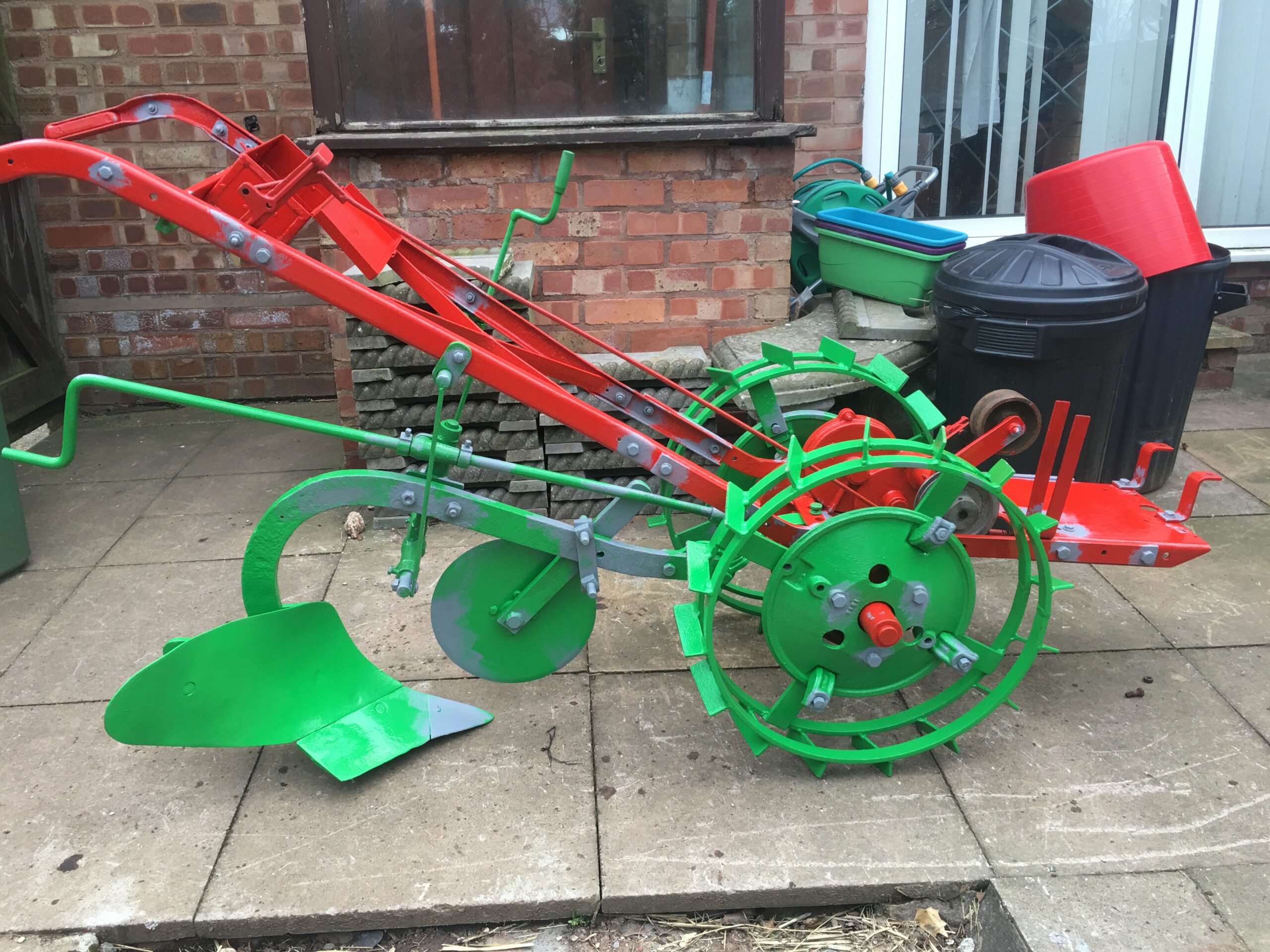 ParticipantHere’s another view of the chassis completed but in daylight. Today I’ve managed to get some zinc primer on the nuts and bolts and touch up where I’ve scratched the paint from reassembling her. I’ve finished re fitting all the chassis parts which were the 2 z shape brackets for the front grille, belt guide, toolbox and disc coulter for the plough. I finished up tonight getting the first coat of red paint on the insides of the bonnet and side panels and the second coat of red on the fuel tank brackets. I’ve finally received the last items I need to complete the restoration. A new fuel tap from villiers spares, an air filter from an auction site, John Bull cable ties from same auction site. Finally but by no means least a set of bonnet decals from Titch (machinerydecals) these really are stunning and after seeing his work on this site I’m really glad I went for them these will be the finishing touch.