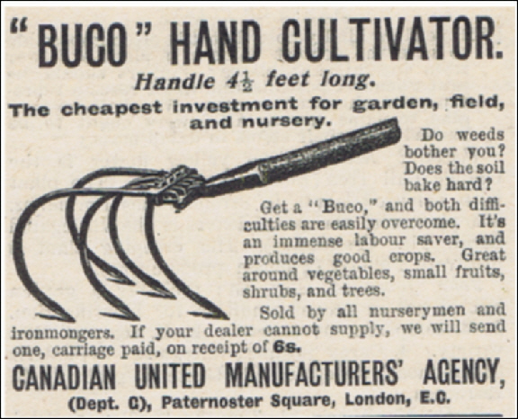 BUCO hand cultivator. The cheapest investment for garden, field and nursery. 1910.