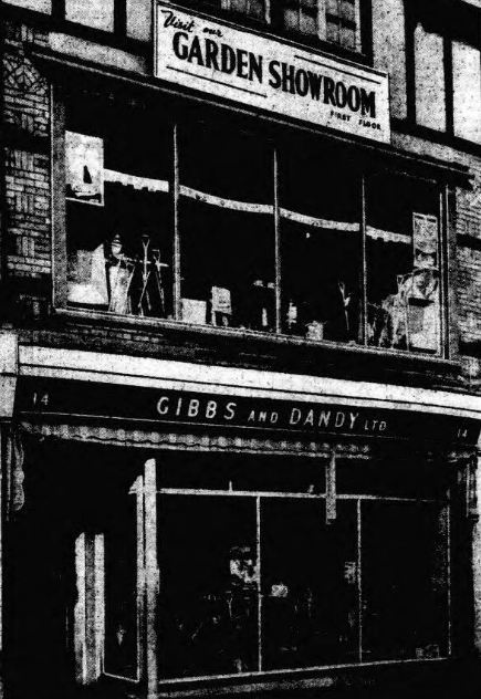 Gibbs & Dandy had a shop at 7, High Street South, Dunstable and certainly another at 14, Chapel Street, Luton. The Dunstable shop is shown below with a gardening display in the left window.
