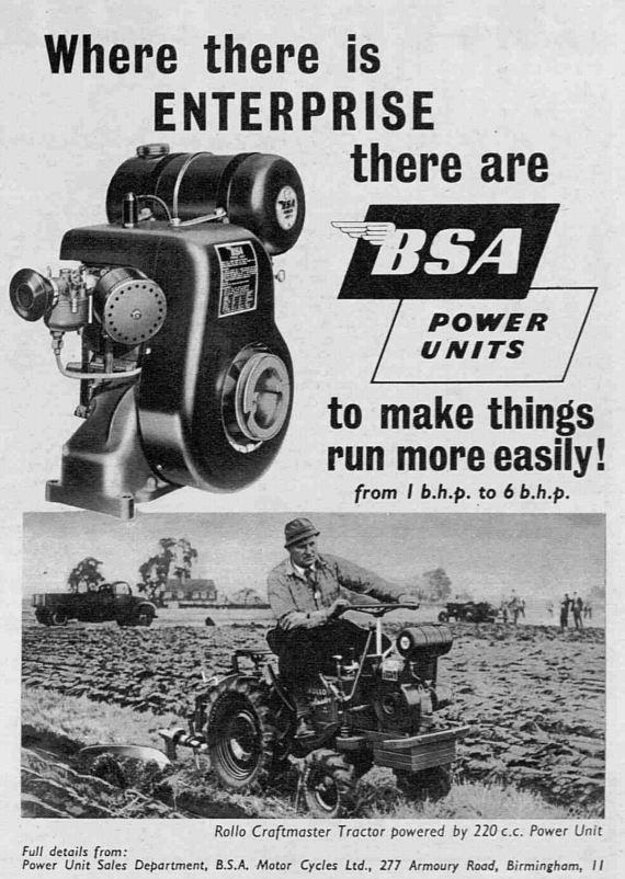 Another addition is this BSA engine advert from June 1957. Note that there is another tractor ploughing in the field so this is more than likely a ploughing demonstration attended by several manufacturers.