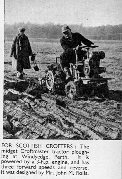 “For years Mr John Rollo, O.B.E., had turned over in his mind ideas for helping Scots crofters. He had seen the acres of barren countryside in the Highlands and the primitive means of cultivation.