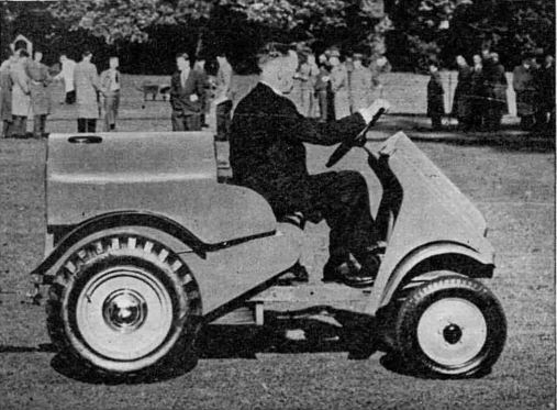 Another machine shown in the image below that doesn’t seem to have dated much through the decades is the Garner industrial tractor when fitted with the optional full body tin work. Even today the addition of the tin work makes it look a smart machine, the designers obviously thinking about how the final machine will look and the attention to how the bodywork is sculptured. I still haven’t seen one of these fully-kitted out tractors or an image on the internet yet, perhaps the optional tin work was expensive? The image below shows one being exhibited in 1954 at the National Association of Groundsman’s Exhibition at The Hurlingham Club, London. The VHGMC have a Garner register here.