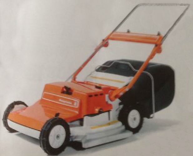 In Sweden the Husqvarna company was making the MK 500 mower (pictured below) in around the late 1960′ early 1970’s, these mowers were retailed in the UK. This smooth ABS shelled mower was available in two fashionable colours, either a mid-blue colour for the push-version or if preferred there was an identical looking self-propelled front wheel driven model in bright orange, as pictured. The mower was advertised has having “clean, almost streamlined styling…the smooth uncluttered lines making it easier to keep the machine clean and smart“.