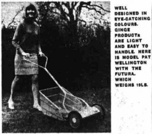 Advertising in Amateur Gardening in 1973 ‘Ginge have taken the hardwork out of mowing. They’ve produced a selection of lightweight Hand Mowers, Motor Mowers and Rotary mowers that literally glide through the grass‘.