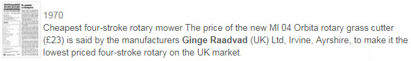 1970 also saw the MI 04 Orbita mower being as the ‘lowest priced four-stroke rotary mower on the UK market’ at £23.00. (source: Surveyor magazine)