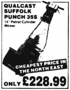 Briefly, there is a huge range of electric mowers. What’s the difference between the Qualcast Concorde RE25X and the RE30X apart from £10.00 ? Or the Flymo Sprinter E25 and E30 ? A brochure would be mighty helpful!Of note is the advert showing there is a petrol Flymo Strimmer Weedeater 1400 and also a 1700 model – potentially a rare machine now as many may have expired through the last 30 years. The price then was £114.99 which is equivalent to some £308.00 today so a hefty investment for a homeowner.