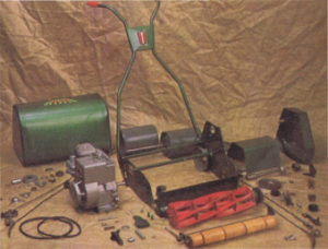 For utter devilment our gentleman in the dealership image could be forced by his female companion to have a hand-push mower, that’d teach him to look out of the kitchen window and daydream for a petrol powered machine instead of getting on with doing the washing-up at home. The push mower range consisted of the 10″ Whippet, 12″ Wasp and 12″ Witch. Respectively priced at £17.54, £18.64 and £25.24 inc tax.