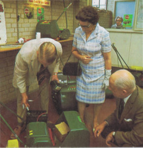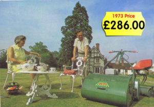 For utter devilment our gentleman in the dealership image could be forced by his female companion to have a hand-push mower, that’d teach him to look out of the kitchen window and daydream for a petrol powered machine instead of getting on with doing the washing-up at home. The push mower range consisted of the 10″ Whippet, 12″ Wasp and 12″ Witch. Respectively priced at £17.54, £18.64 and £25.24 inc tax.