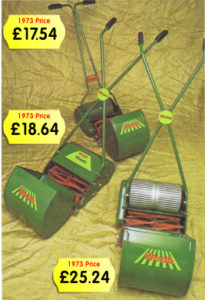 Let us visit some old technology which is now new technology that hasn’t progressed much from the old technology and get ourselves a battery mower to cut down on the use of petrol. The largest 18″ deluxe model which is the left mower in the picture was £132.00 in 1973, approx 30% more than the petrol version. The smallest model was a 12″ cut and priced £54.95 (prices inc tax).
