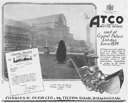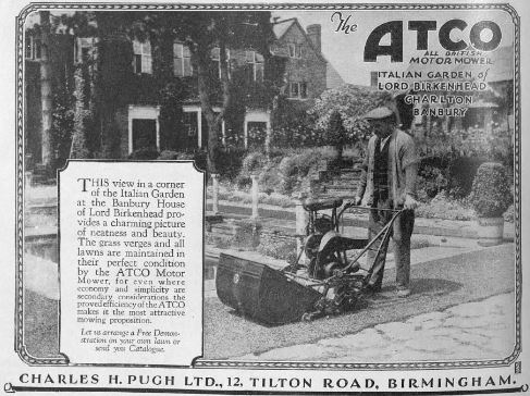 Atco was another manufacturer who, from the following adverts, hired professionals to carefully craft adverts. From around the country they used photographs of well known landmarks, pristine properties and testimonials to create the ambiance that their mowers were far superior to any other make. Have a look at the six adverts below from the likes of The Crystal Palace and the Italian garden of Lord Birkenhead and see if the adverts convince you that their machines are the very best.