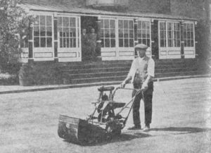 An Atco mower at the Hereford Bowling Club in 1929. The bowling green still exists.Successful advertising can make all the difference to a brand. Displaying a product to the public can aspire them to owning one as well as convincing them they deserve something better than bog standard. Just think how cunning the newspapers, magazines, TV or internet adverts are at convincing us to upgrade our ideas and our spending power, too. Joe Bloggs may only have a patch of grass big enough for a 12″ push mower but advertising will do it’s hardest to convince him that a 14″ model would make more sense, no, perhaps a 16″, or even 18″ would be better and have (unneeded) added features too, how about petrol instead of electric, and self propelled would be an advantage. Eventually that £49.99 purchase becomes £349.99 and the newly acquired mower spends several weeks being hidden in the shed, hiding from the family, like the guilty secret it is.