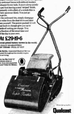 Back to mowers, and just having looked at Webb brochures, ‘The Space Age Mower’ was the futuristic (and perhaps optimistic) phrase that advertised the Webb 2-speed battery cylinder mowers in 1970. There were three models in the advert: a 12″ which could cut up to 800 square yards, 14″ that could do up to 1350 square yards, and a 14″ de-luxe that could cut up to 2200 square yards per charge (and work for a claimed 2.5 hours) – will all the battery mowers of today achieve that? Will any new mowers in the 2020s really be ‘The Space Age Mower’ that will be in all our gardens soon?