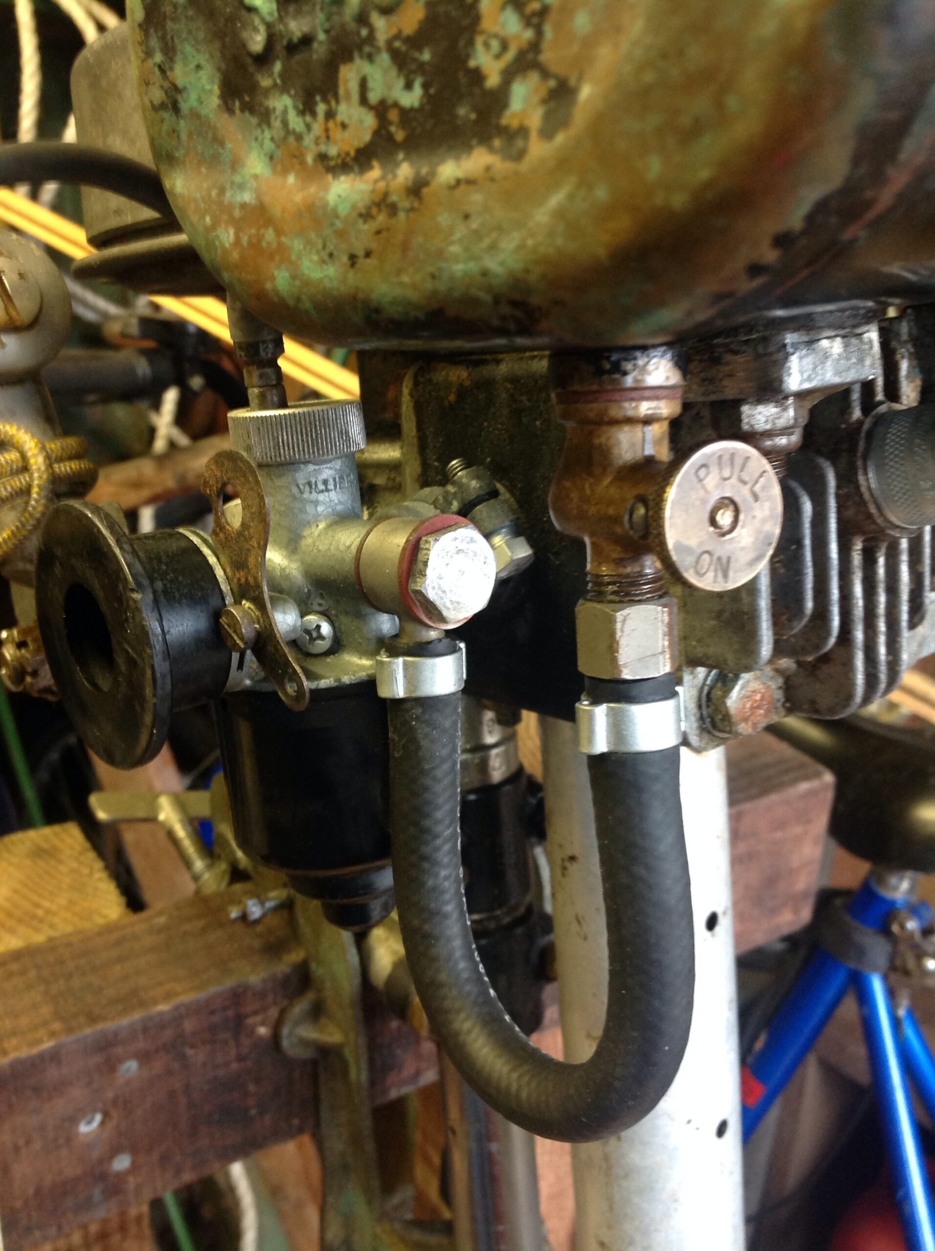Would you believe the engine on this beast was designed to run on a 10:1 fuel mix I guess smoke and oil pollution was not too high on the agenda back when these engines were designed, there are conversion kits available to bring the ratio down to 25:1 but not fitted to this engine as it will not get much use and the oily mix has done a great job of preserving it so why mess with a working formula.https://www.saving-old-seagulls.co.uk