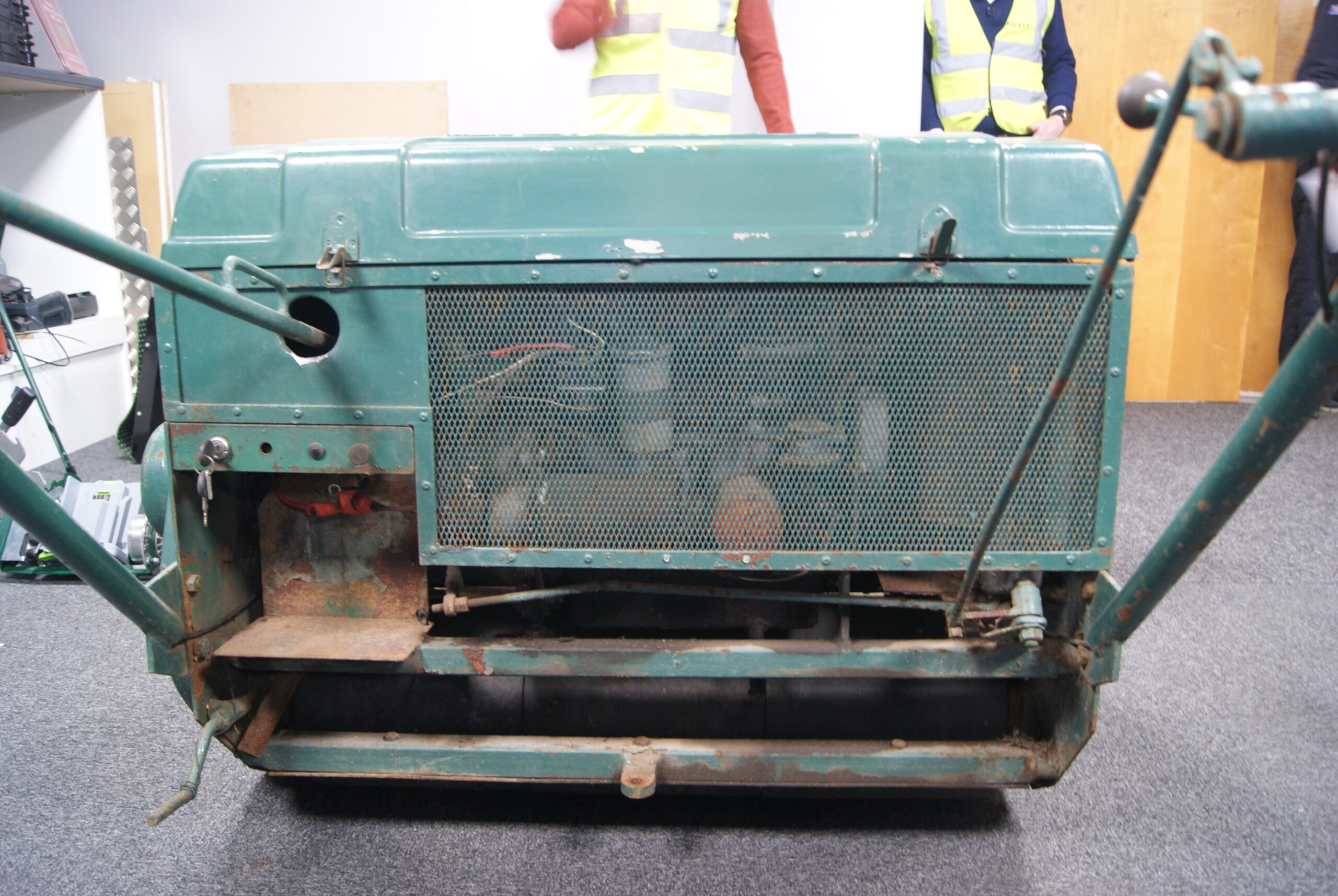 Here are some pictures that I took of the mower whilst it was still at the factory. For it’s age it is in remarkably good condition and definitely needs preserving rather than restoring. A certain amount of paint re-touching will be necessary and the skill will be in blending it in with the existing paint.