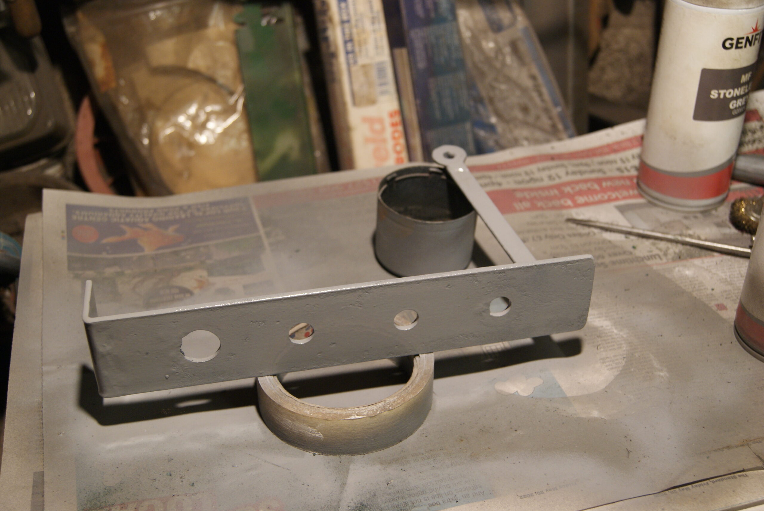 The front crossmember is now cleaned off with a wire wheel and primed with grey primer. There are some other brackets that are undergoing the same process with the acid and soda and will also be painted with primer before having a coat of Allett green. The starter motor, fuel pump, radiator, cowling and distributor are also ready to be re-fitted once the chassis work is completed; the dynamo is with the local auto electrics expert who thinks he can resurrect it with a bit of work.