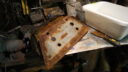 I seem to have used the wrong photo on the sequence but it should show the lid with most of the paint and primer removed. Now that it won’t be used for extended periods the temperature build-ups shouldn’t be a problem anyway, but the action I’ve taken in removing the thick coat of primer should correct the fault anyway.