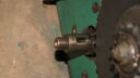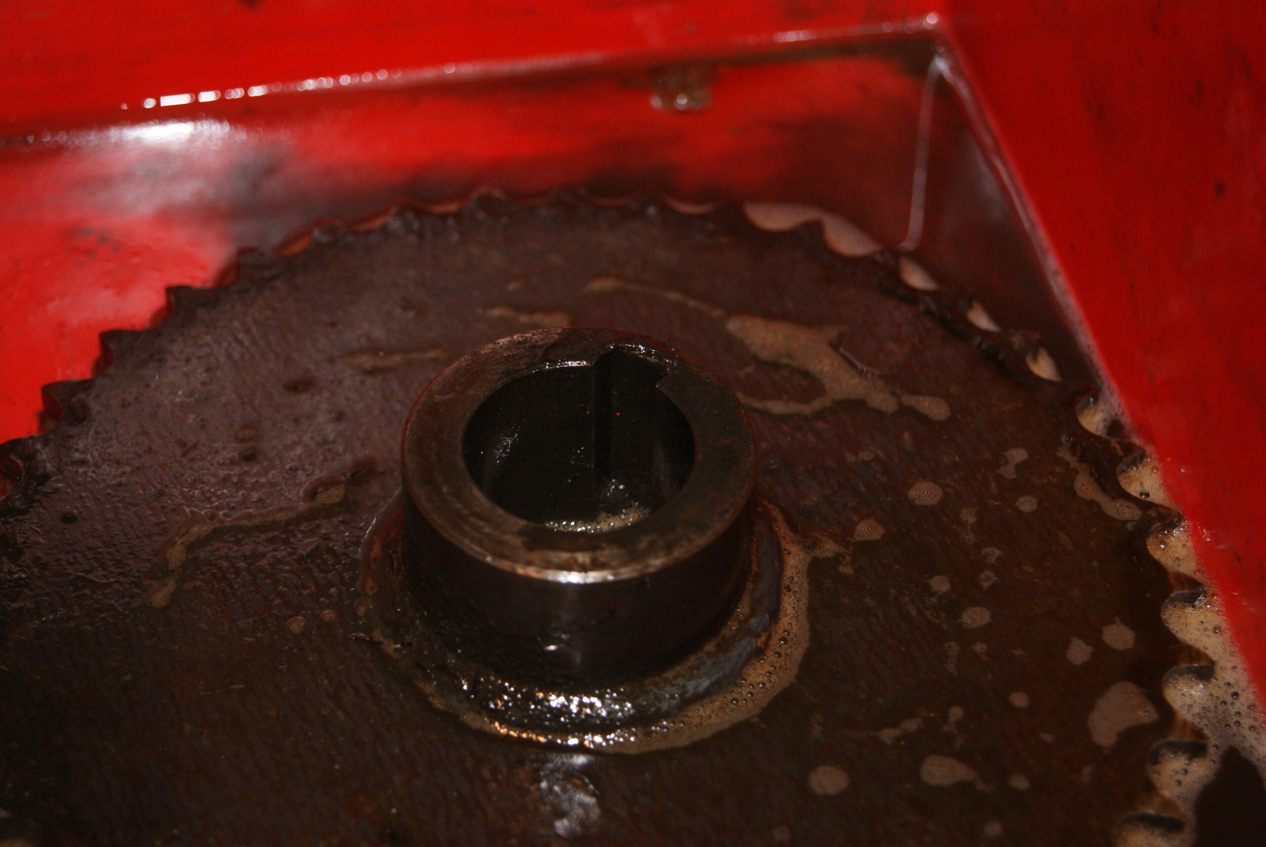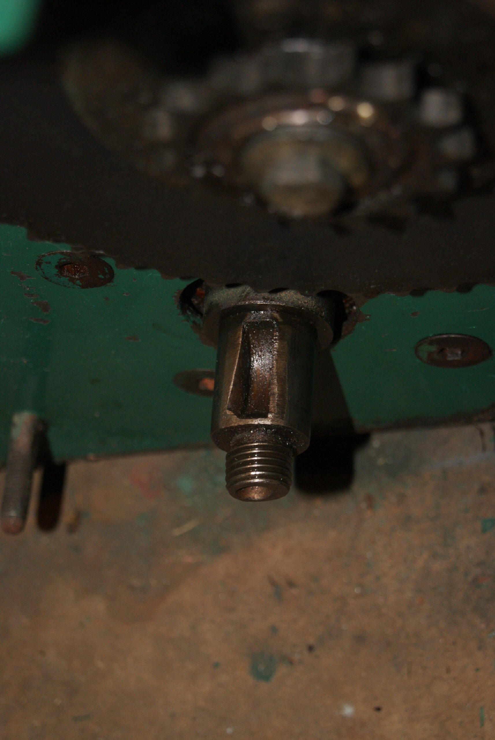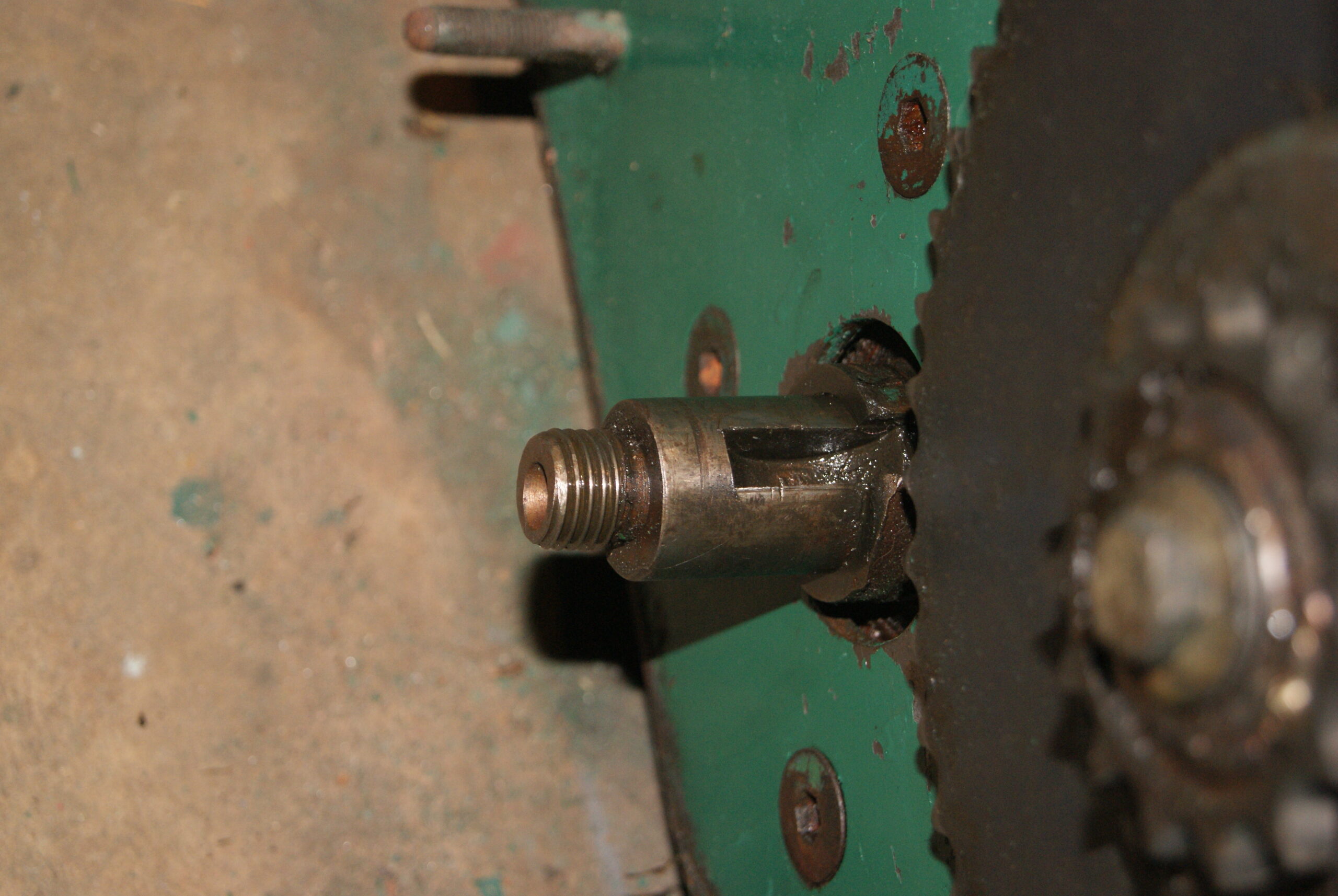 Next came the roller drive sprocket, and I suspect that somebody was in the middle of a repair when it was decided to replace the mower as the sprocket was loose on the shaft and the nut barely threaded on. On closer inspection it appears that somebody has made a new sprocket and made quite a good job of it; the shaft it fits on looks like the Woodruffe key that locates the sprocket has worn and rolled somewhat in it’s groove, then somebody has cut another groove on the opposite side of the shaft. That would have been fine, but the new keyway has been cut too far towards the centre of the mower and cuts into the shoulder that the boss butts up against. To compound the problem even further the external thread for the locating nut has been bent slightly out of true. I’m not going to swear, not yet anyway.