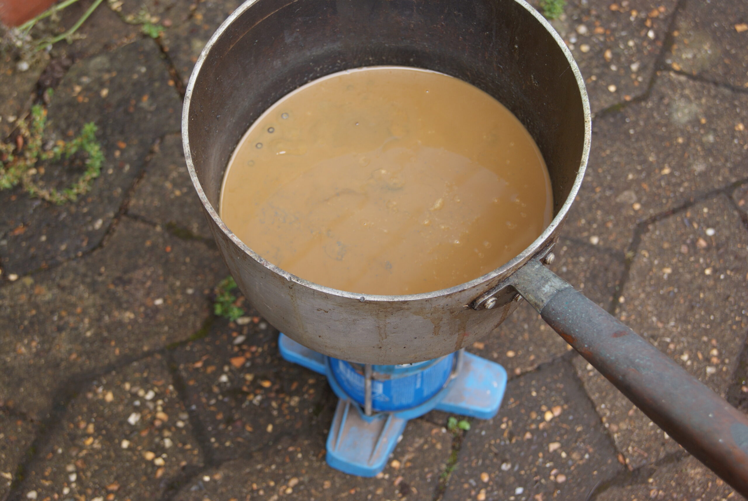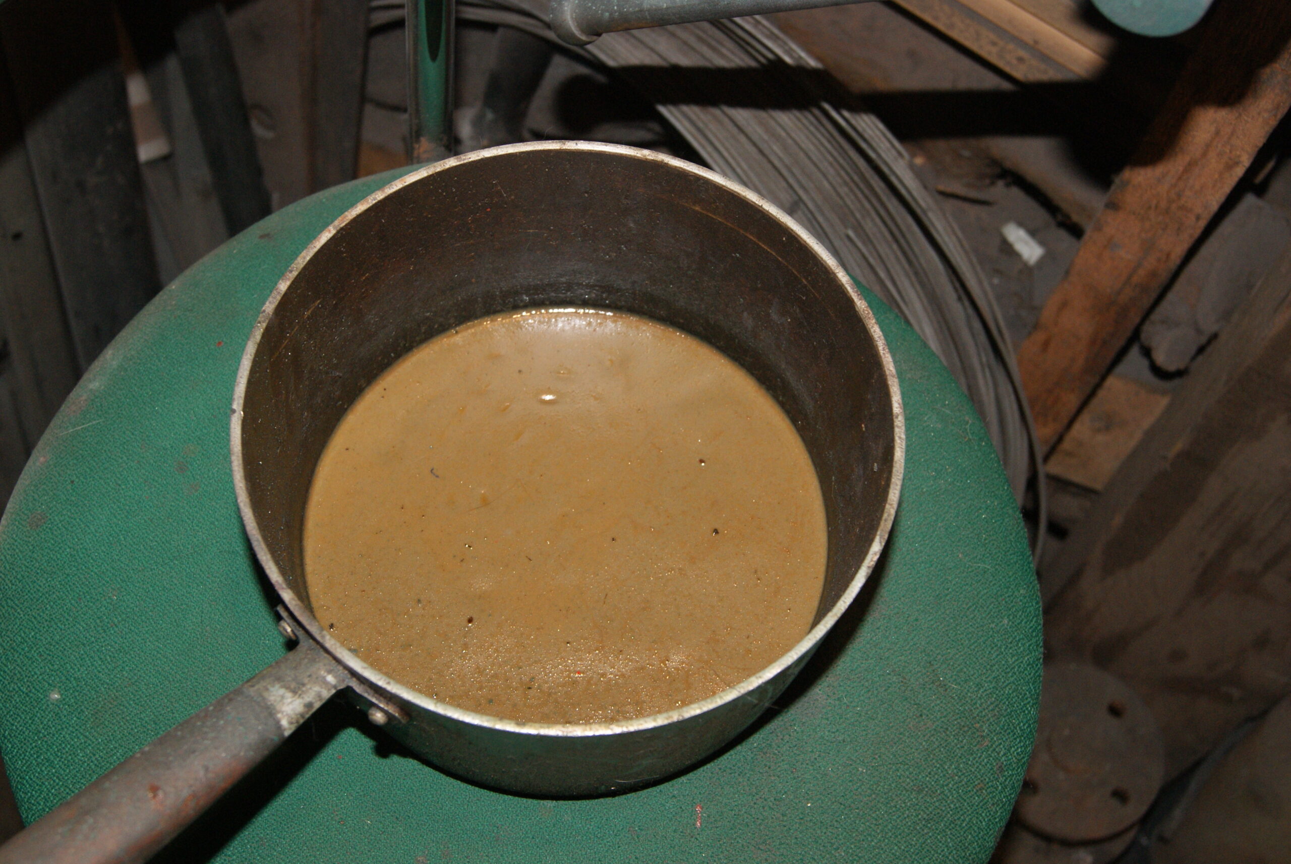 I then heat it up again to a liquid and fish the chains out, wiping them with a cloth to clean the excess off and then I can pour the grease back into the tin to use next time.