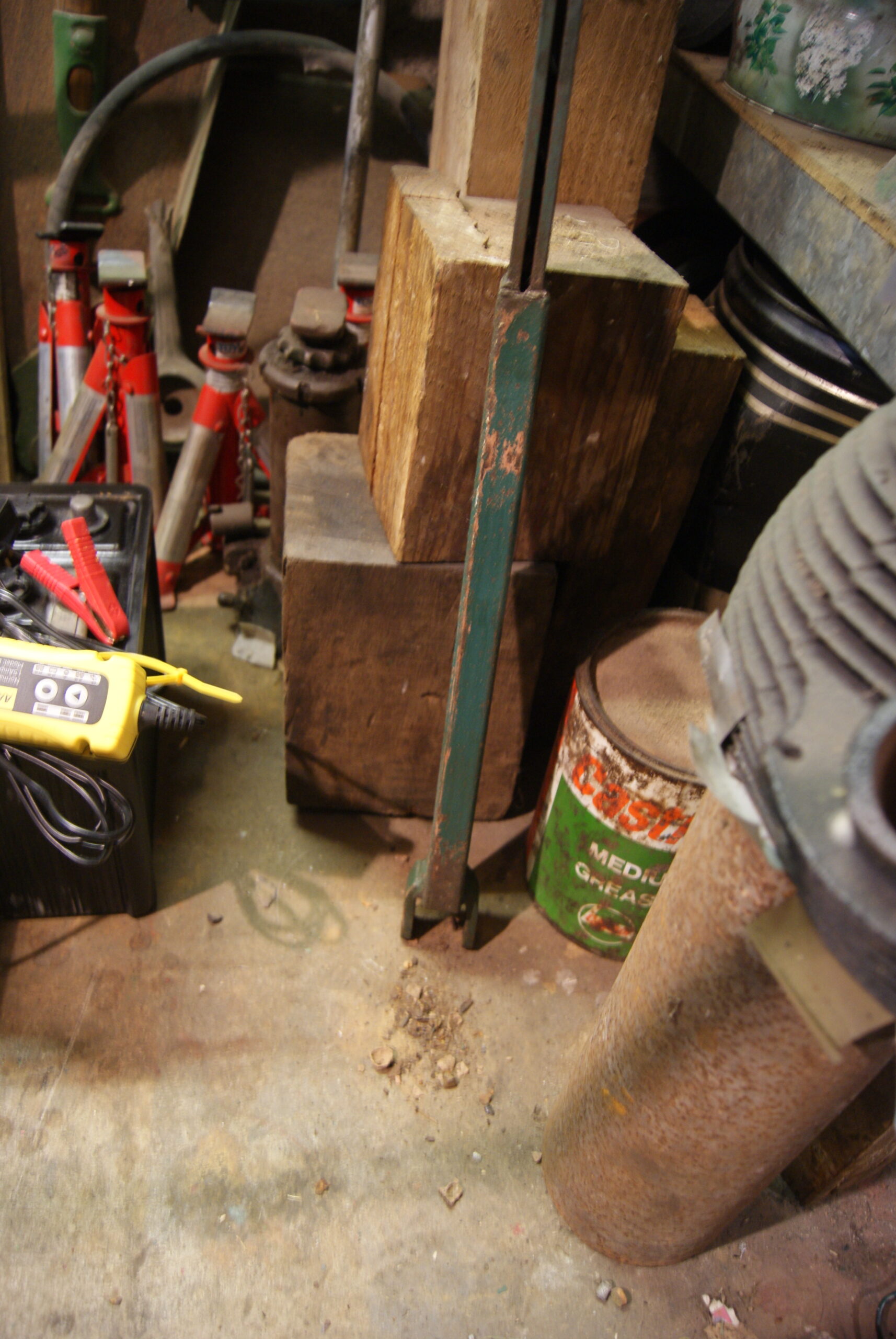 It’s now all rubbed down with wire wool and WD40 then cleaned up with the Screwfix degreaser, although a lot of the grease build up I chiselled off with a paint scraper beforehand. All of the smaller parts are soaking so as soon as they are clean I’ll start on re-assembly. An interesting aspect of the clean-up was that the drawbar had been filled with nuts by some industrious little rodent; I do hope that he didn’t go short of food when the last owner got rid of the mower!