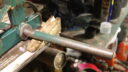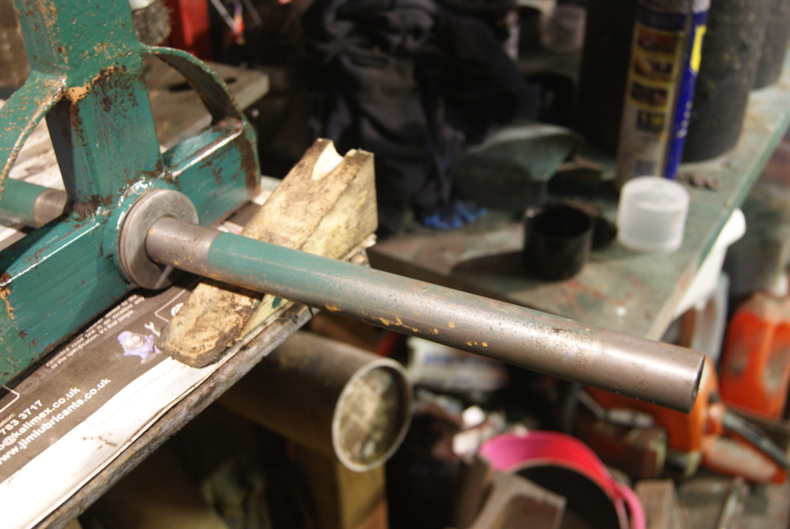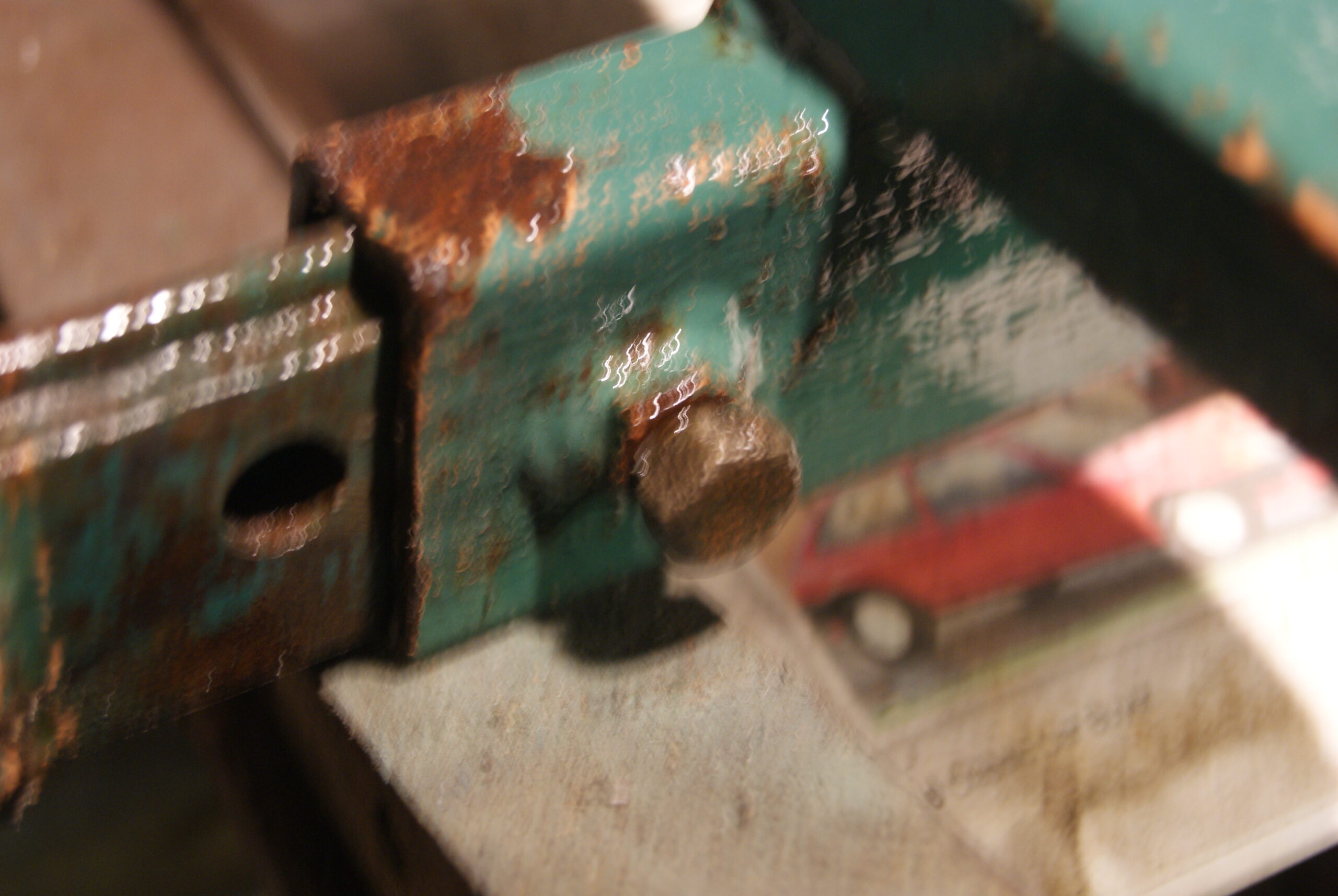 The seat pan has already been cleaned and rubbed down; the cushions are away at the trimmers to get repaired, so the drawbar and rollers were next on the agenda. It really is a weighty piece of kit so to reduce the weight I decided to remove the rollers first. Somebody had really tightened up the securing screws at the ends of the axles and it didn’t help that they were dome-headed with a recessed hexagon for an Allen key- I was convinced that each one was going to round off just before they cracked and loosened. The drawbar is adjustable and is slotted into the front of the seat platform but the locking bolt had not been tightened for some time, being only two turns in. This meant that the drawbar was absolutely solid inside the outer tube and only plenty of oil and knocking it backwards and forwards got it loose enough to come apart.