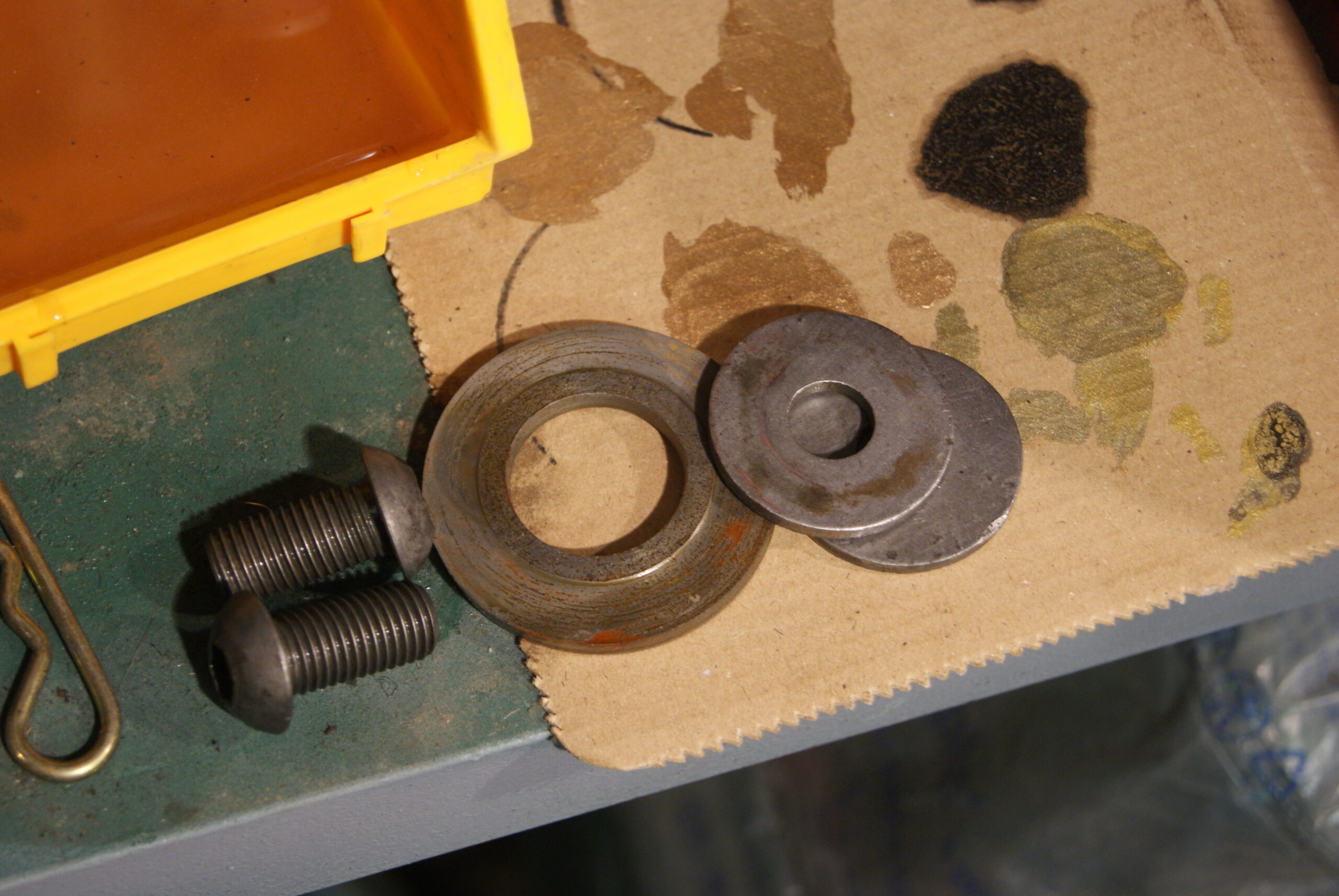 trusty220KeymasterI’m not having any of you accusing me of slacking so I’ve been in the garage again today. Not too much more to report apart from the fact that the axles on the trailing seat seem to be in remarkably good condition with original paint still showing through where it hadn’t been worn off by the rollers. All of the bolts have been cleaned up and re-entered into their respective holes so that they are now doing the job they were designed to do. All of the thrust washers and retaining screws for the rollers are still serviceable and so will be used again, but I’ve spent the morning wiping everything down with meths and spraying it with satin-finish varnish to preserve it. It’s all got to dry now before I do any more building up; now it’s Saturday afternoon, where did I put that beer….?