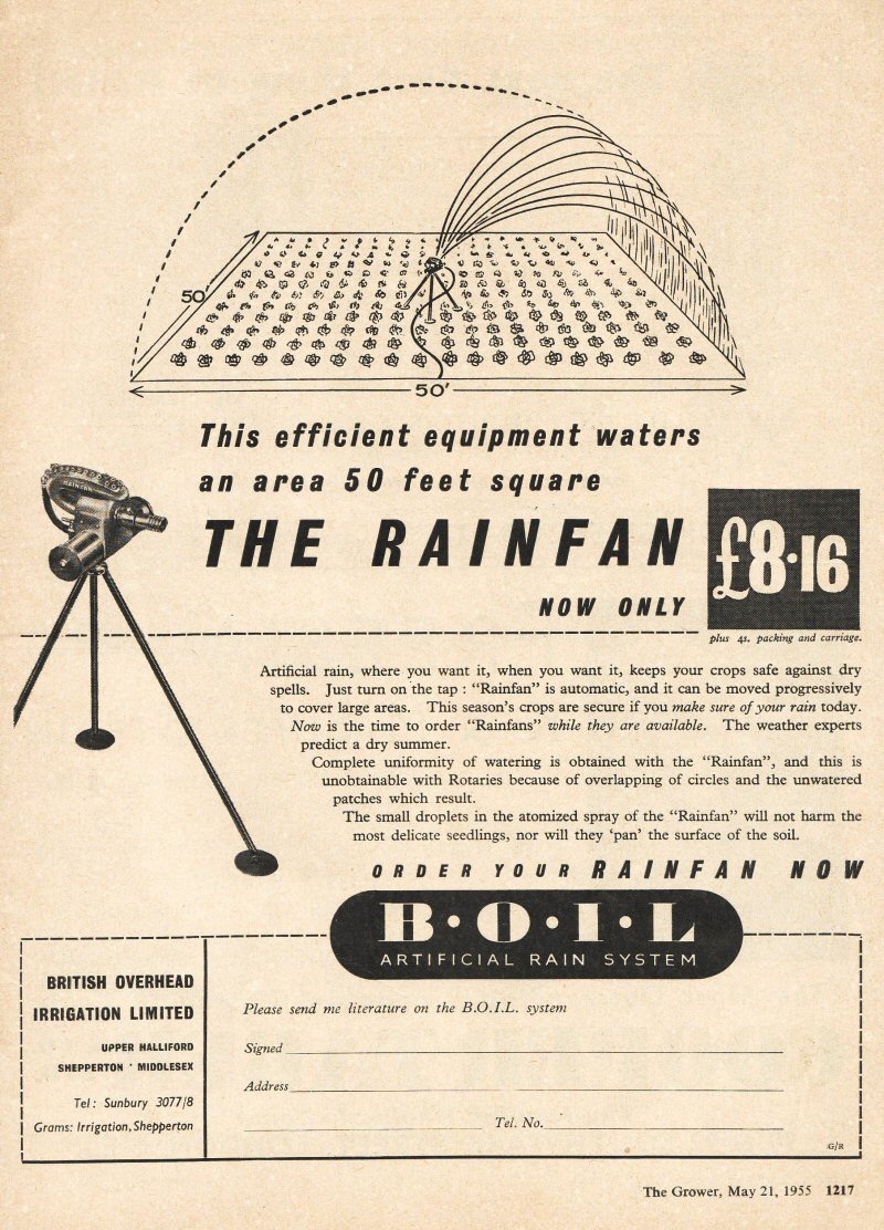 British Overhead Irrigation Ltd, had its factory on the site what is now Shepperton Studios,near to Kingston upon Thames, London.