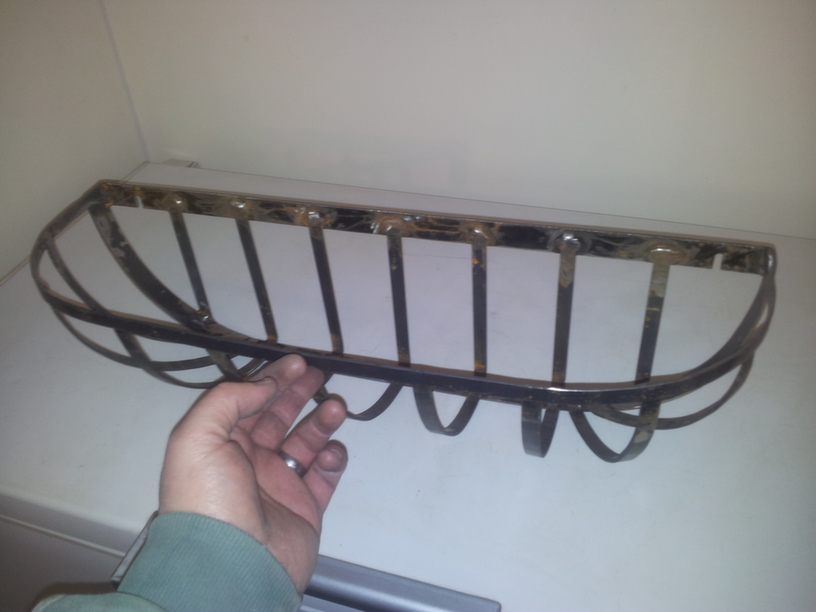 darmic1ParticipantWas then side tracked by another project. Not strictly horticultural, but will be in the garden next year……. We’ve had some Baskets/Planters on the fence for the last 5 years, this year whilst emptying the compost and liners they kind of fell apart, rusted away completely. I’ve kept one as a template and quite a few weeks ago bought the steel to remake them. Its been cut and just sitting in the garage for a month. Today I finally got to weld one together, the other 2 are ready to go, when I get a dry day. Here’s the 1st of 3. Once finished they will be blasted and powder coated black.
