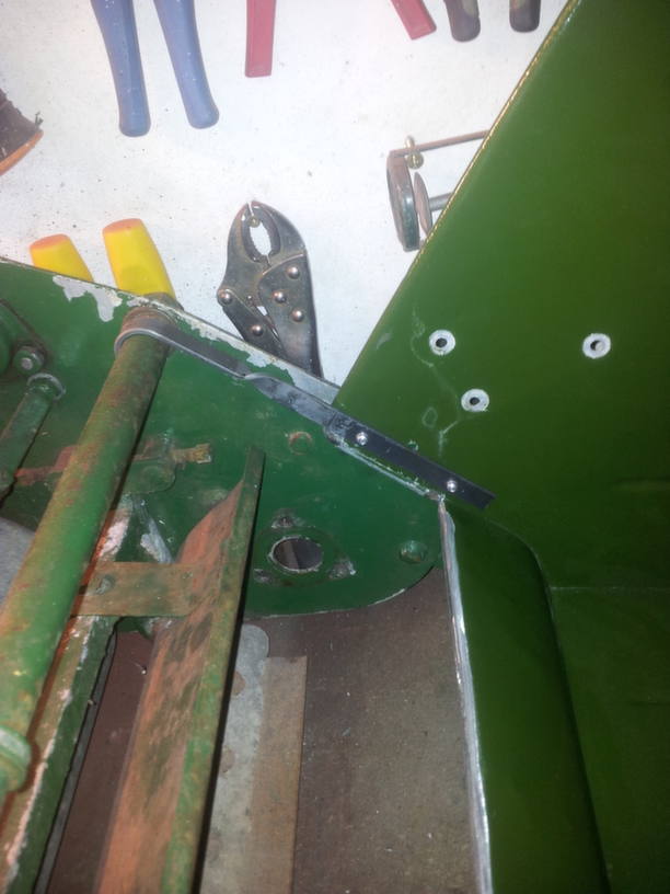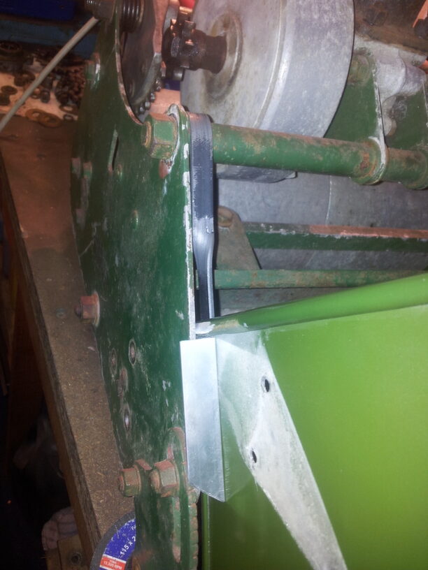 darmic1ParticipantNext task is to set about making brackets to secure the grass box to the mower. I didn’t have any steel wide enough to copy exactly the brackets which are shown in Gareth’s pictures. However I had a solution, some thinner steel strip, twisted through 90 degrees and curled to fit the frame of the mower. Some aluminium angle was cut to shape the same as the original grass box, this rests on the top of the end plates of the mower. Keeping the grass box central between the end plates. Once the brackets were completed they were riveted through the grass box.