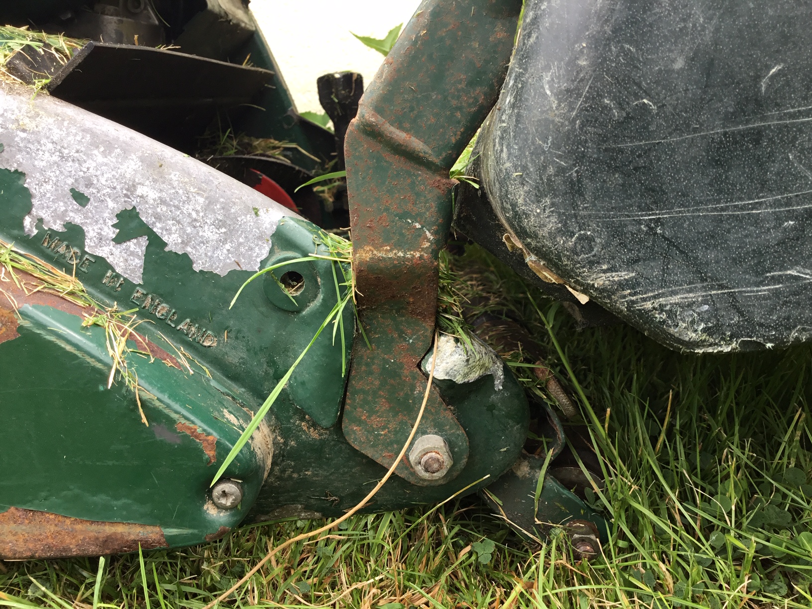 I have attached a couple of photos to show the angle and also the bolt that I would expect to be able to undo to adjust the angle of the bar that supports the grass box.