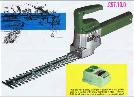 I have the brochure for the 1969 range of B&D hedge trimmer, they ranged in price from £5.19.6 for the attachment that went on the drill up to the Heavy Duty corded trimmer at £19.19.6. The rechargeable one was even more expensive at £57.10.0.