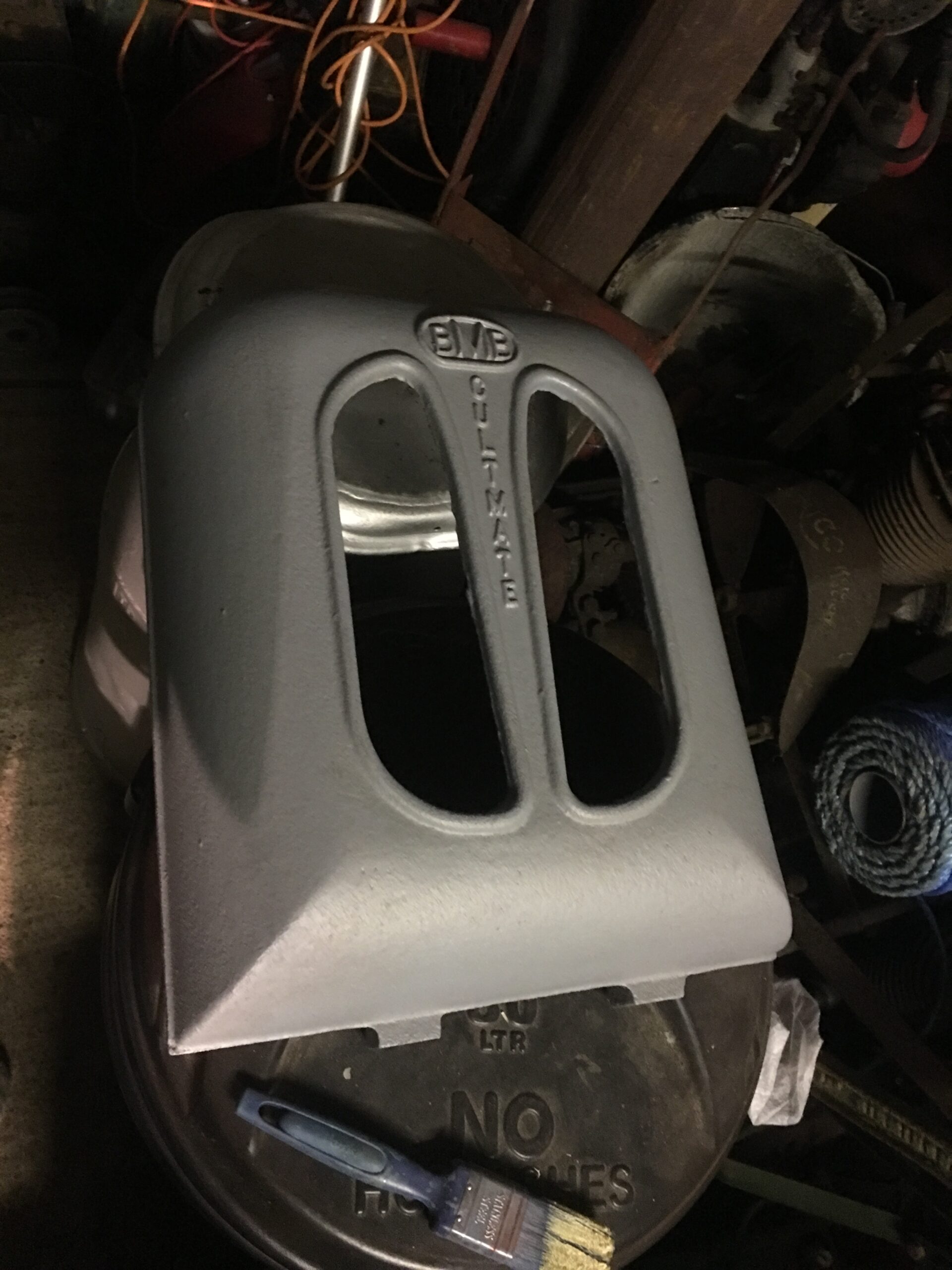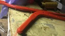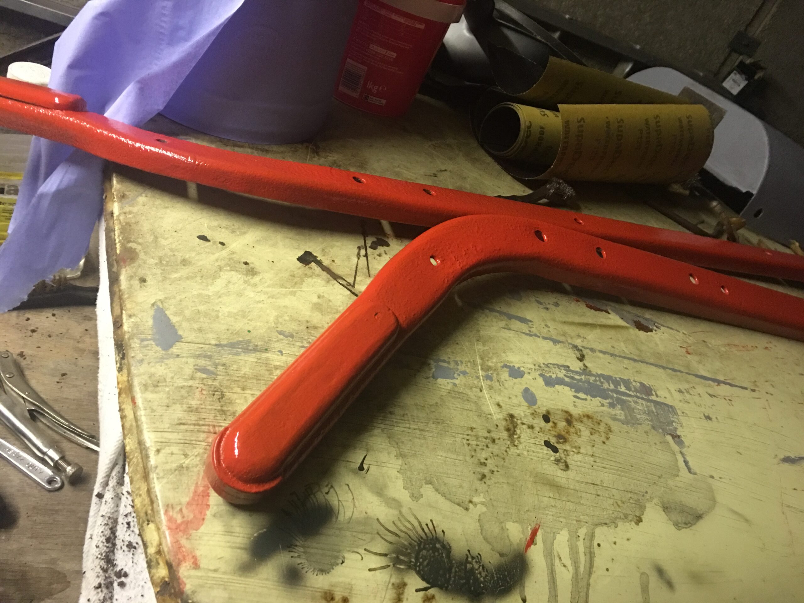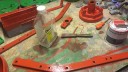 Started to get the red on the chassis and all the framework for the handles. The nose cone had remnants of red paint inside so I’m going for red inside and silver outside.