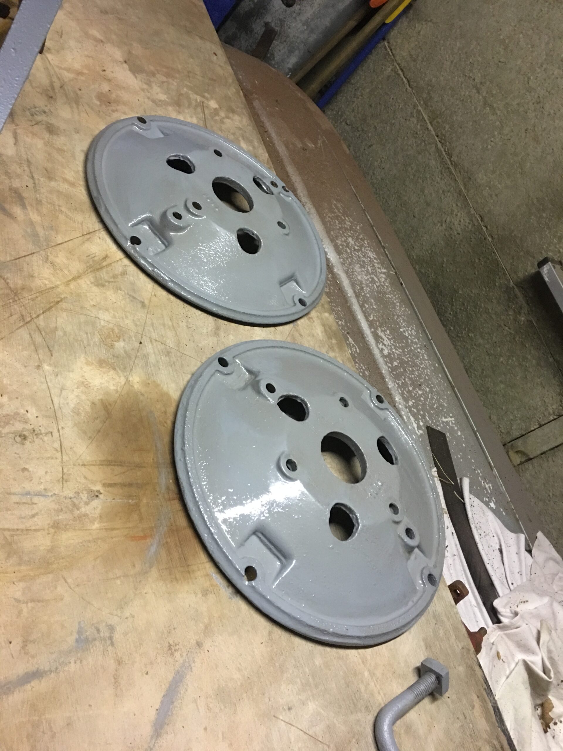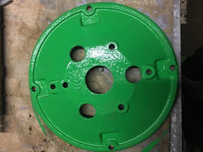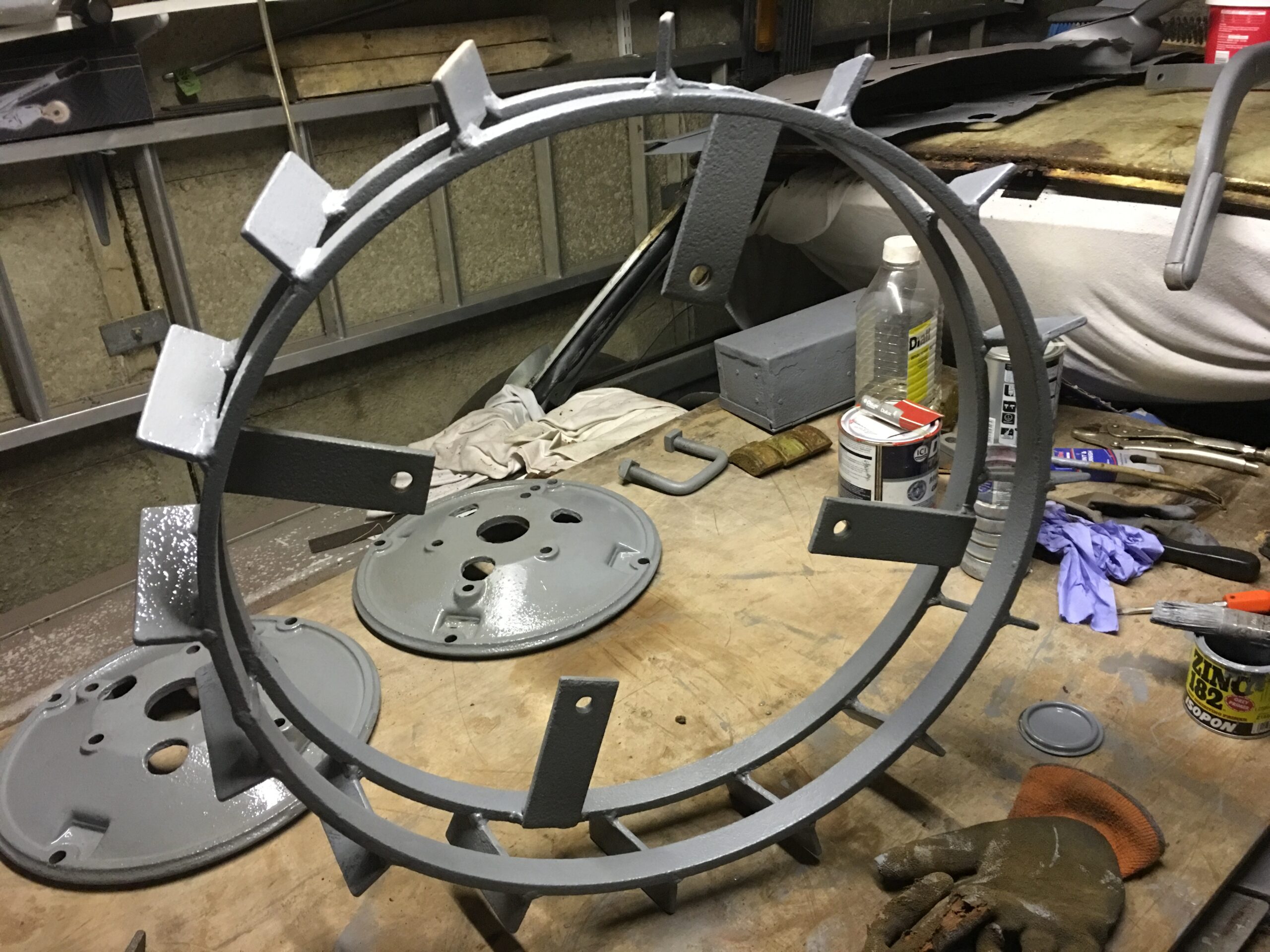 Cleaned and primed the wheel hubs and spade lug rims.