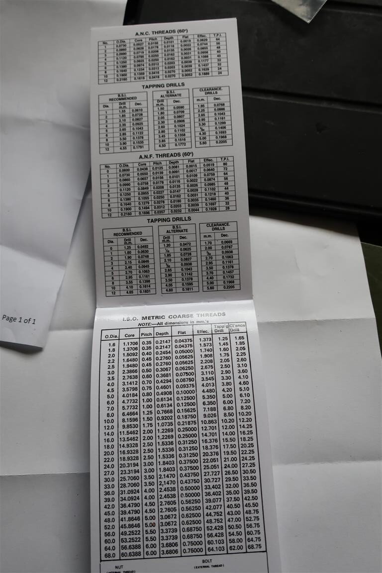 Certainly need to get a set of thread gauges and the Zeus tables
