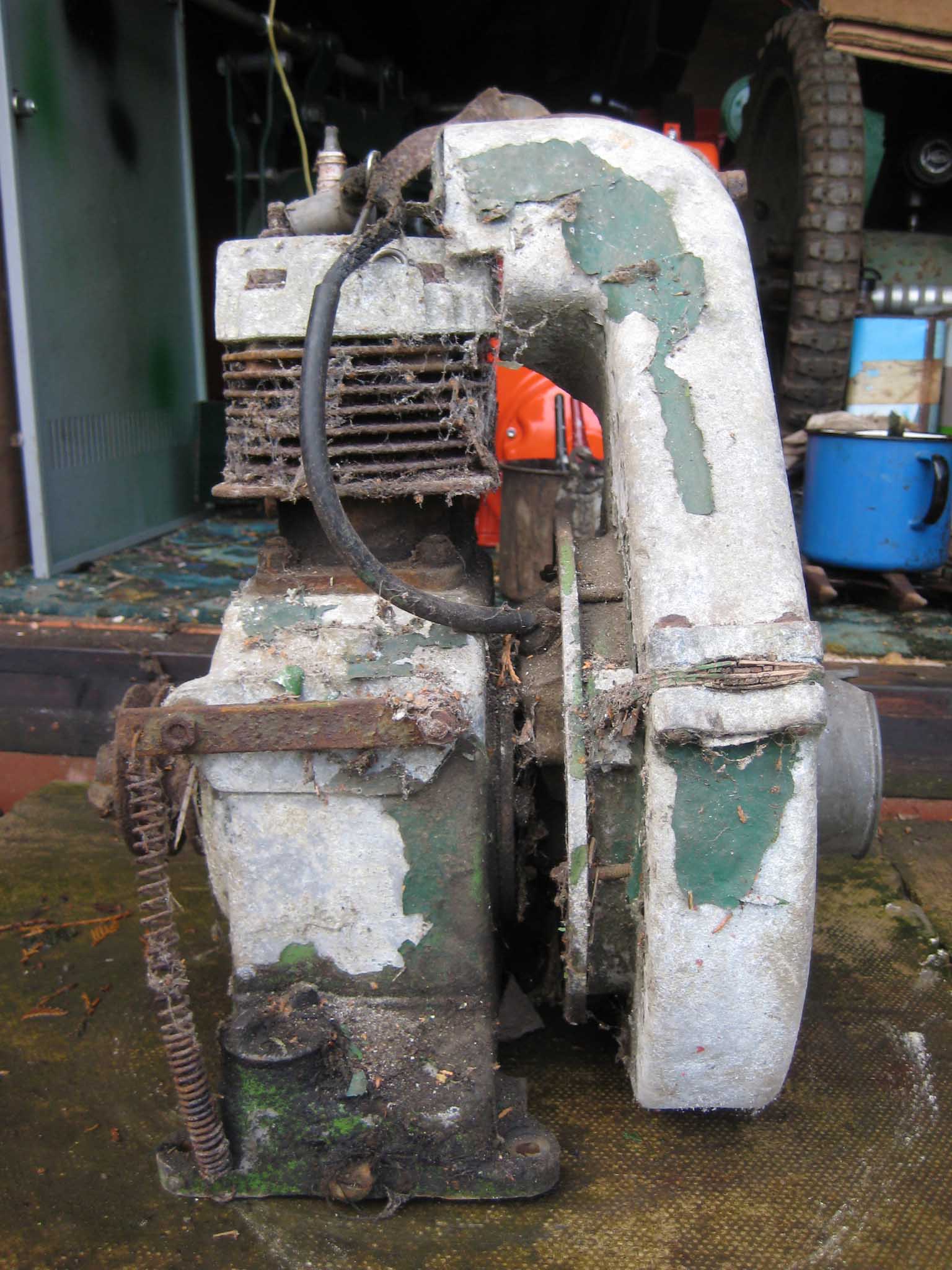 charlieKeymasterThe block looks like a Mk20 or 25 but the fan cowling is wrong for either of those. The cowling is similar to that on some early Allen Scythe engines. A mystery. Any part numbers on the castings eg block, magneto back plate etc.?