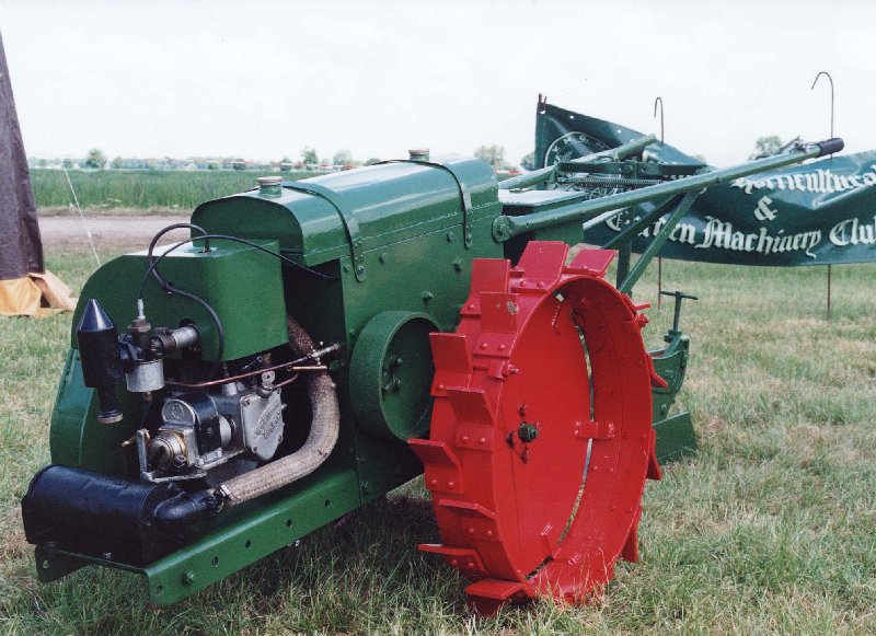 trusty220KeymasterAndy- the engine is definitely not a Blackburne for a few reasons. The magneto is fitted across the front of the engine, whereas the Blackburne has one fitted at right angles to this to take the drive off the end of the camshaft. Also, the head is flat with two large brass plugs above the valves (one has the spark plug in it, the other is a blanking plug) whereas this engine has a domed top to the head. I realise that the rotation is the opposite way, but the cowling on the first picture is incorrect for the tractor anyway and the engine should rotate anti-clockwise when viewed from the right hand side. Compare the two pictures of the tractors that I have included- the colour one is my own No.220 which is the oldest surviving Trusty.