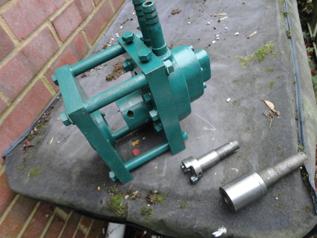 When I bought the Clifford MK1A, It came with a PTO and a Pump(With pressure unit and gauge not shown) I have now stripped these down , freed them up and given them a lick of paint, The PTO would have had a flat belt pulley, swapped for a v belt job, the pump however came without a drive shaft, It seems to have had two parts driven by a simple slot and pin, the one on it was home made, and I have made the extension to mate with the internal drive, What I don’t know is if anything is missing! I see a pair of threaded holes in the “face Plate”, but for what? I could do with an original instruction book or parts list for this pump, so, A Mighty long shot….But if any one has a copy, I would be much obliged. PS I enjoyed meeting up at the GDSF, very helpful blokes, regards to all. Plonker
