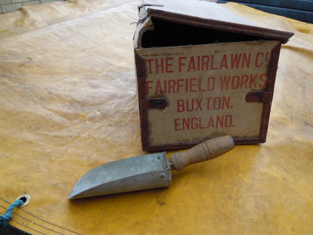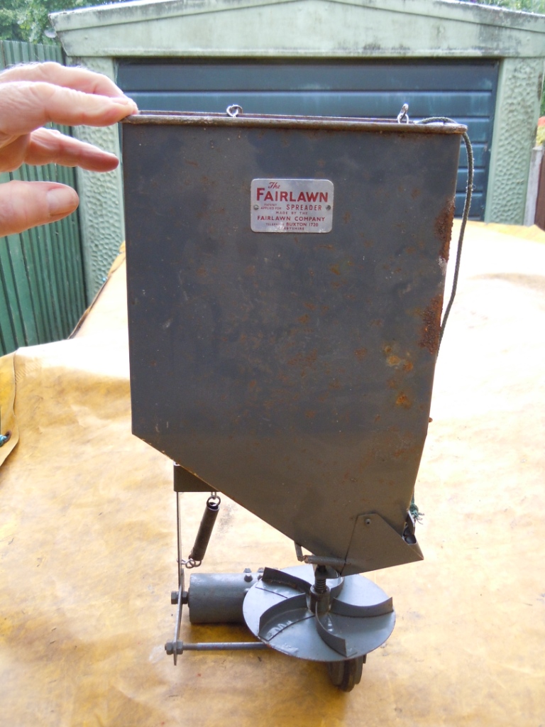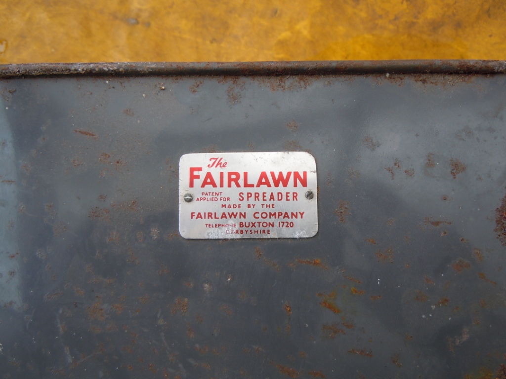 “The Fairlawn spreader is made by the Fairlawn Company, Fairfield Works, Buxton, Derbyshire, to fit any normal wheelbarrow and enables accurate distribution of small repeated doses of artificial fertiliser”.