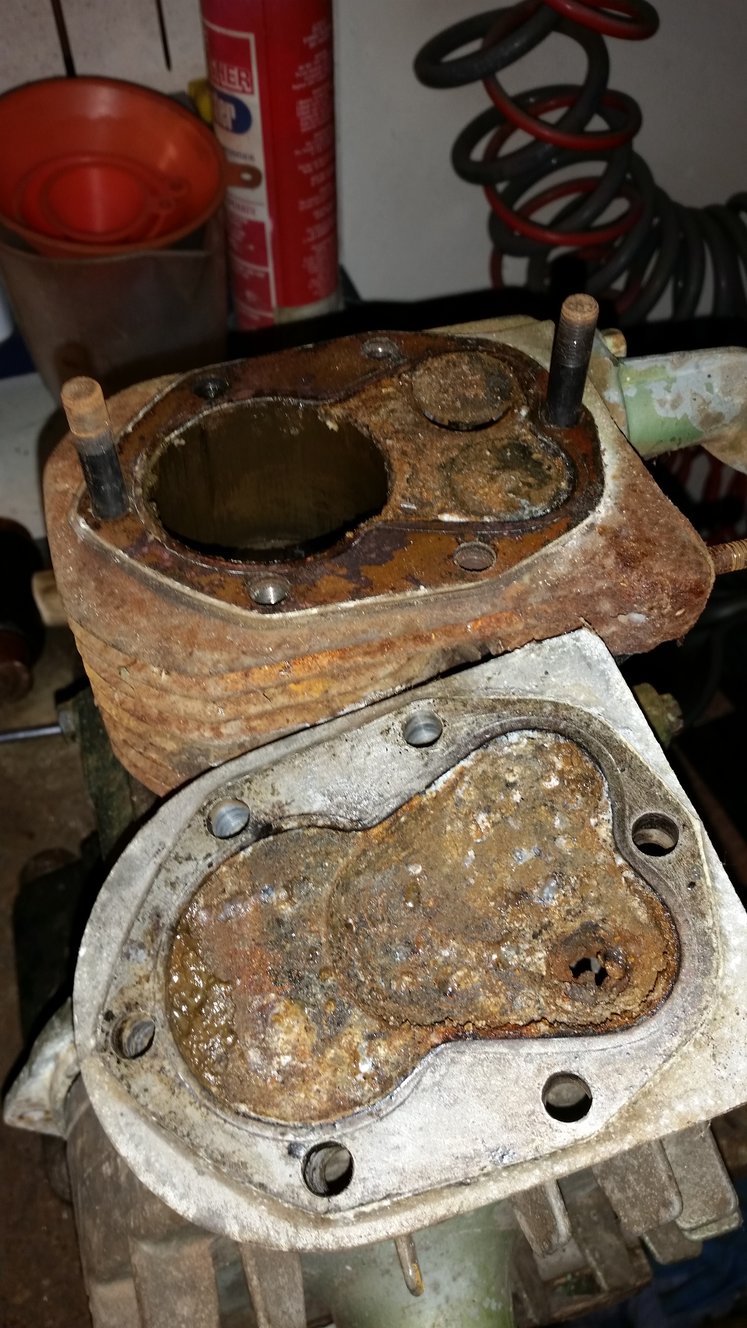 darmic1ParticipantMade a start stripping down the Mk12 Villiers on this machine. I was a little surprised to find the internals of the engine in this condition, given that the machine was supposed to be running 1-2 years ago. It almost made me wonder if it was beyond repair? There was some serious jellified rusty goo in the cylinder and head. the piston rings were corroded in the piston, the exhaust valve seat had some of the worst pitting I have ever seen and the re-buildable ‘Lodge’ plug base was corroded into the head.
