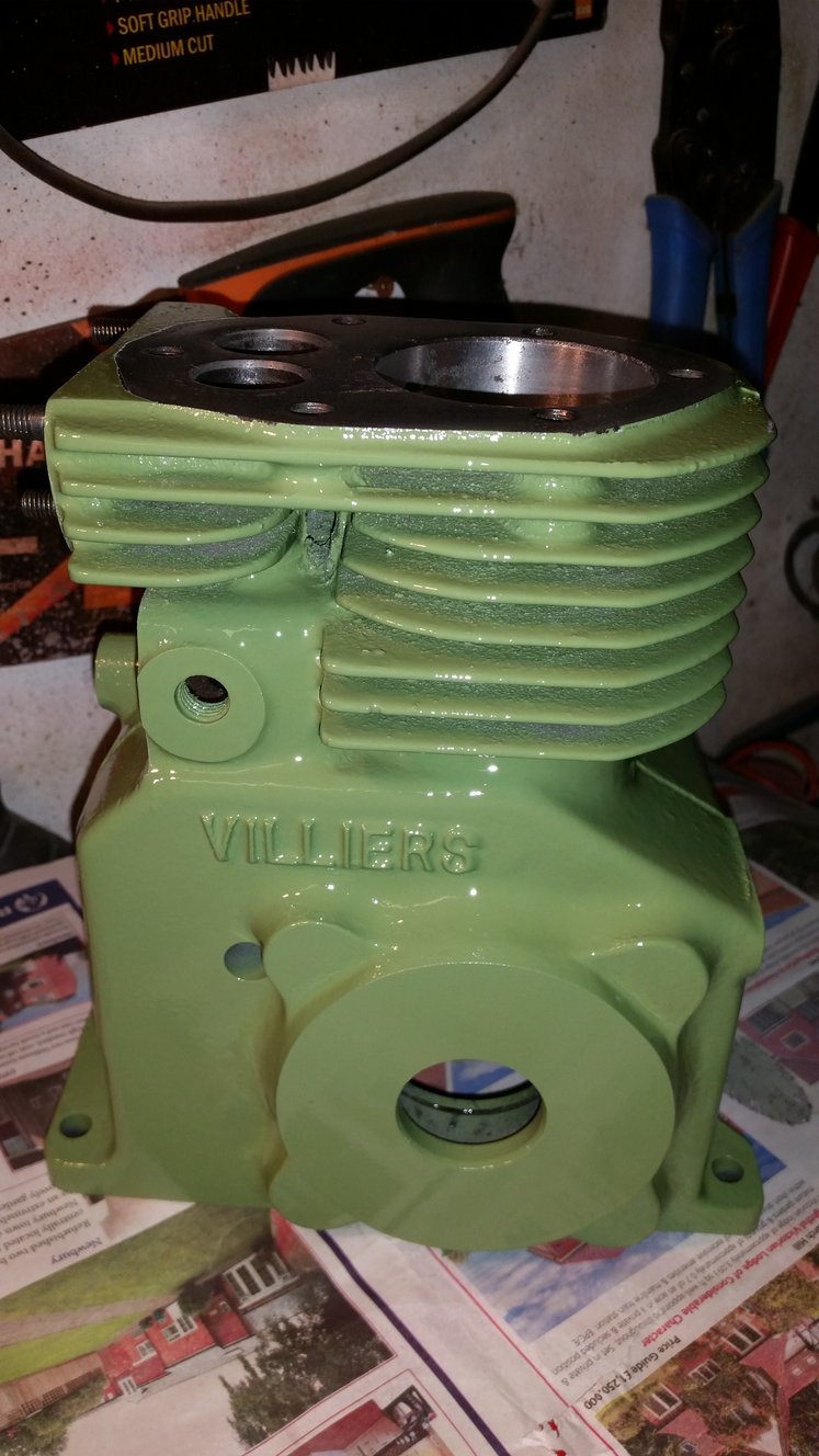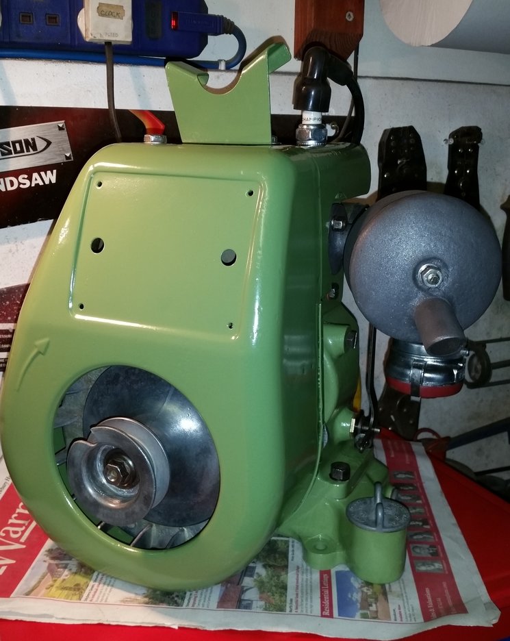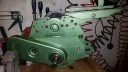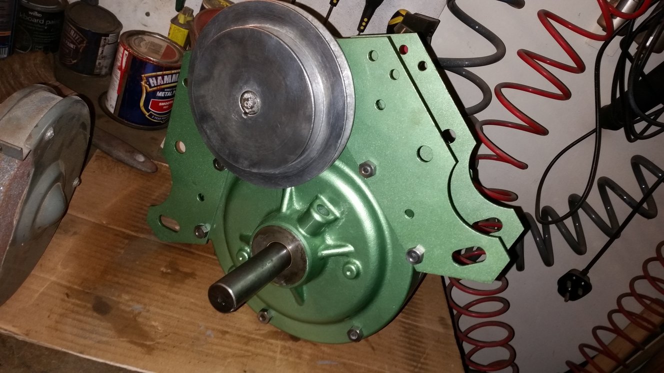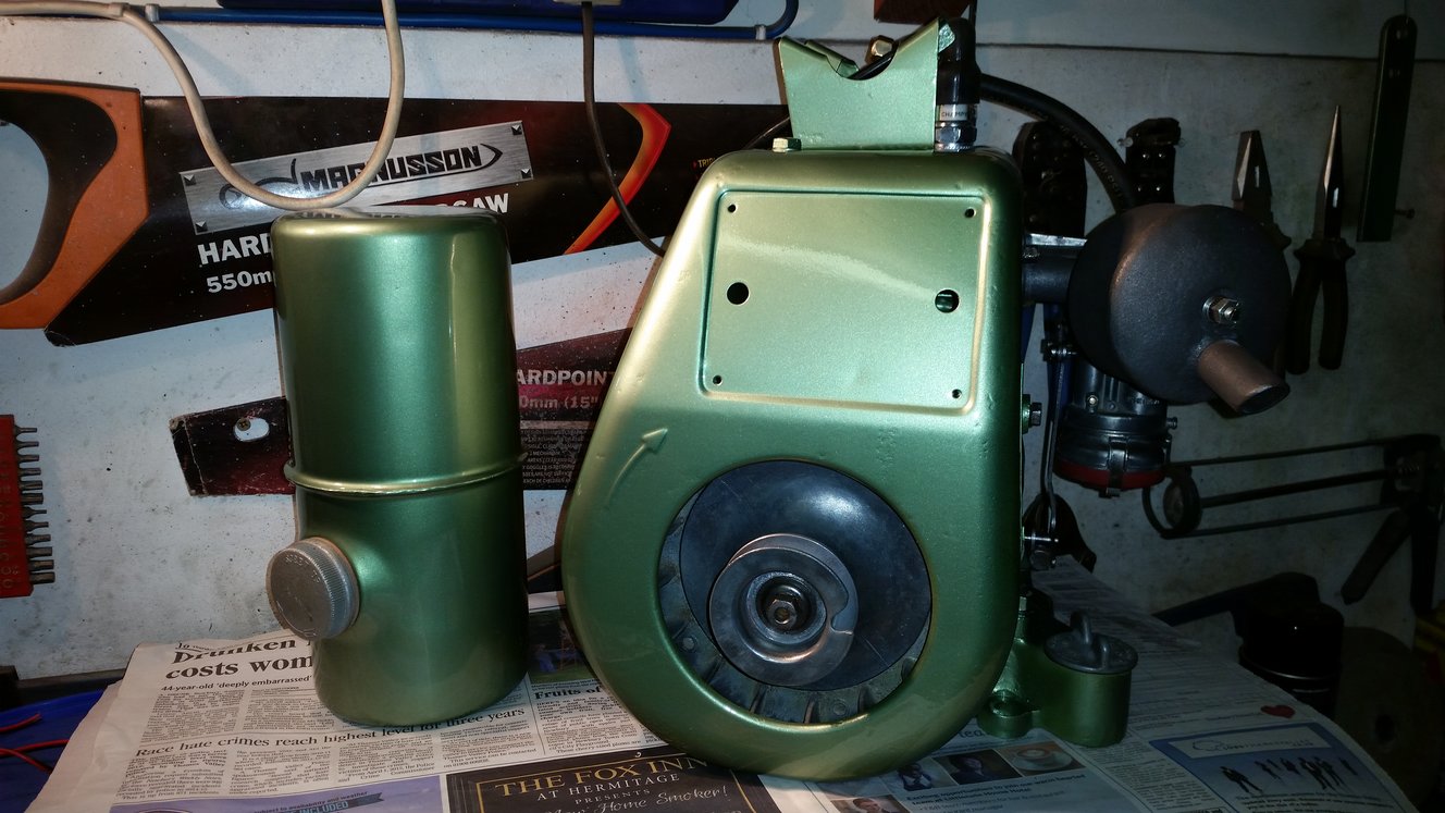 darmic1ParticipantOnce the gearbox was cleaned of all the dried mud and oil, I discovered the actual flat colour I was using was wrong. So a trip to my paint suppliers with a sample to obtain the right metallic colour. Of course this meant taking the engine back to where it could be ‘scotch clothed’ back to key the surface for a re-spray. Here is the gearbox case with the original metallic green found, and the engine following the re-spray.