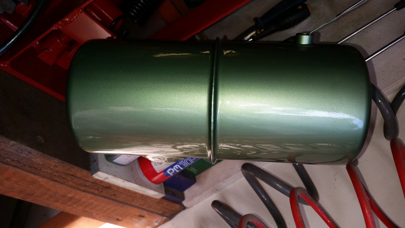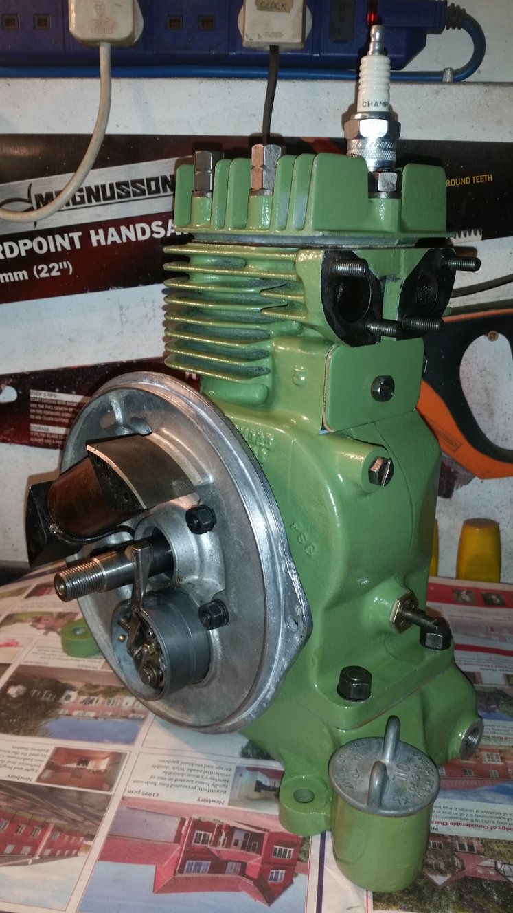I got the engine back together, to a point where the points could be set ready for the flywheel to be timed and tightened. I then made a start on welding the holes in the rusted exhaust. I ended up chasing a few of the holes around until I was able to plug them totally. Here it is once welded and then again when painted with heat resistant exhaust paint.February 16, 2016 at 12:51 am #19532