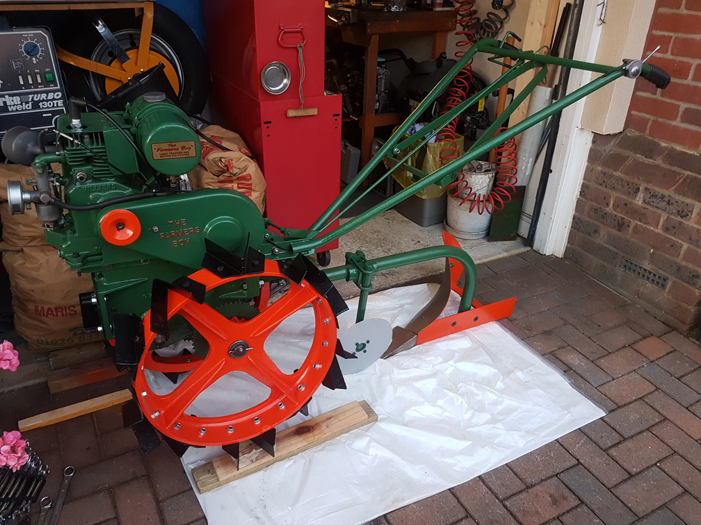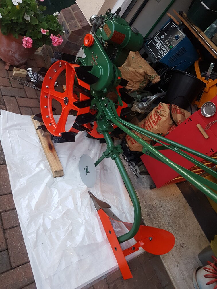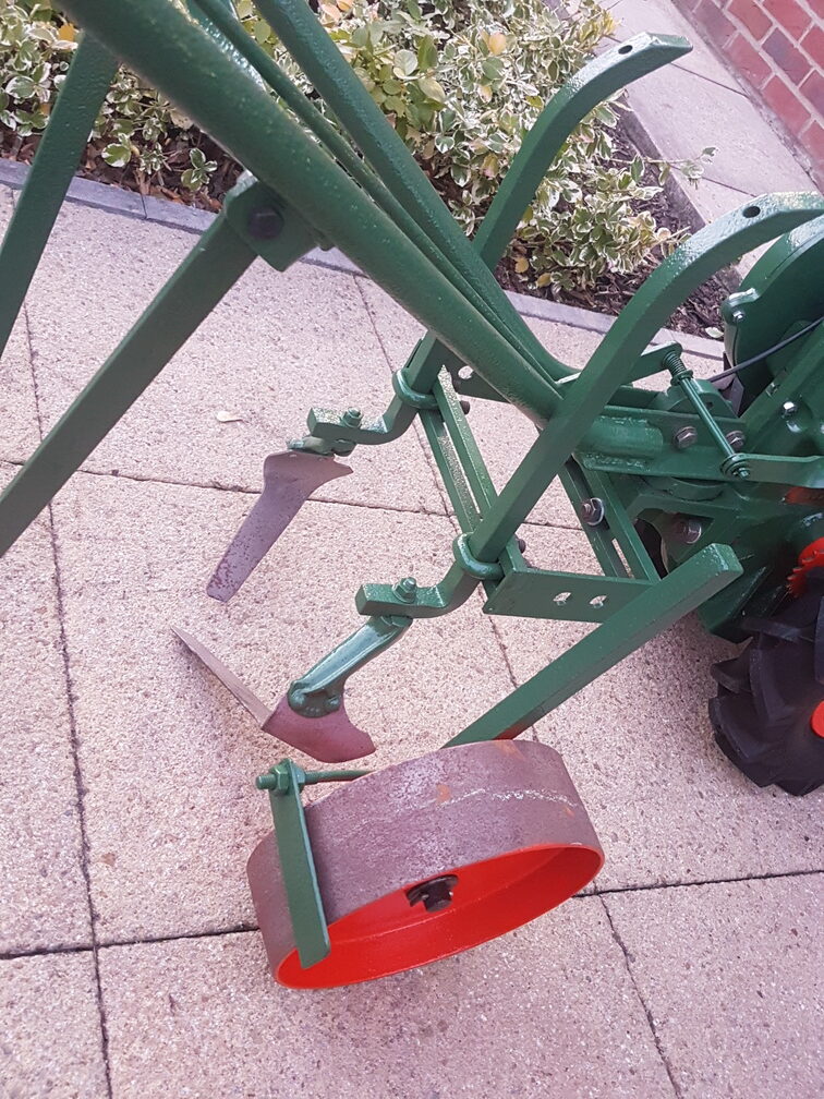 Finally the 22″Ploughing wheels and Plough….. I have to say its a bit of a beast in this guise! Lifting the machine onto the offset axle is a hefty task, requiring some assistance from the wife to guide the handlebars and watch the holes lining up. Once together it looks awesome, I can’t wait to find some ground and have a go with it!!! But, only after Tractor World Autumn!