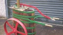 A Four Oaks “Battle” Pattern which spent most of its life hard at work in Lincolnshire, the wear on the stub axles is amazing, as borne out by the wear on the staves caused by the left hand wheel rubbing on them.