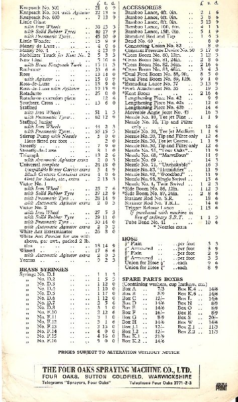 will-haggleParticipantFour Oaks used various county names and other quite random ones! Mostly place names of towns “Bridgwater” “Wisbeach” “Warwick” “Eley”, but the bucket sprayers were called “Farmer” “Farmer de Luxe” “Dairyman”. They also had “Colonial” “Conqueror” “Little Giant” “Victor” “Handy” etc…. I’ve attached their price list….