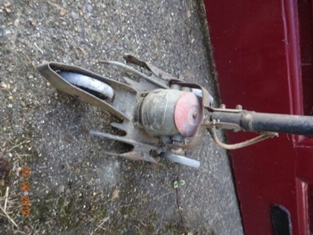 Does anyone want an early (1940s/1950s) Tarp “Grassmaster” – a rotary grass cutter? It consists of an electric motor mounted on three wheels driving a horizontally rotating blade (photograph attached of the business end – including the handle it is about 135 cm high)). My mother bought it second-hand (at least) in 1969, and was told then that it was “quite old”. I have had it since her death in 1988 and would like to find it a new home. I do not know whether it still works (I did use to use it), nor whether it is still electrically safe.