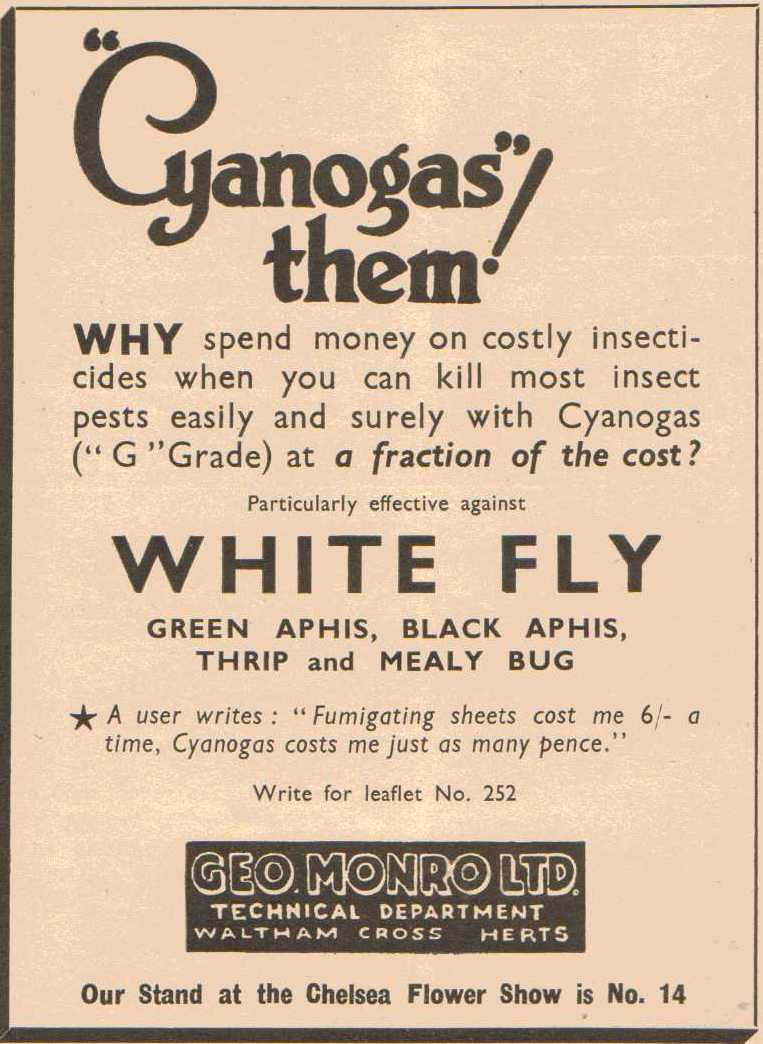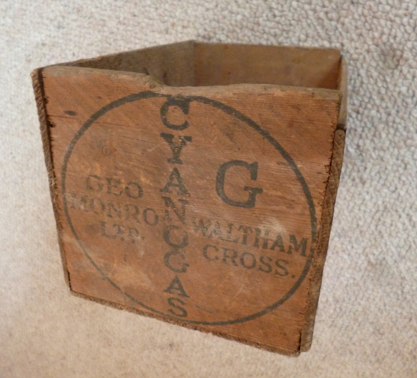 The latest addition to my Geo Monro collection, a wooden box that once contained Cyanogas. From adverts in The Fruit Grower it seems this was used to kill whitefly and also rabbits and rats. The attached article details its use against rats and rabbits. Advert is dated May 21st 1936 and article June 18th 1936. Long before todays health and safety laws and restrictions on pesticides. The box is marked with a G so I assume this is the grade G referred to in the advert.