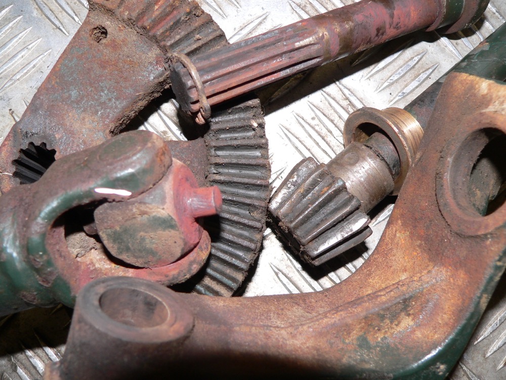 ParticipantA bit more progress, The Eliminator is now knocked down into parts, if only it had been looked after, I always say if it stands still oil it and if it moves oil it some more, Photos whats left, engine and frame, removed the hand lift, someone may need it and is allot better than the hydraulic lift, everything needed heat and persuasion, spent ages getting the PTO shaft off the engine shaft only to find the UJs were shot so might as well gassed it off the hydro in the first place, the steering rack and pinion are good bearing was worn and loose, its different to the other two mowers as the pinion is a separate part on the end of the shaft and held on with a pin, note the worn UJ pin and the hole in the end of the PTO shaft if only they had put oil down it would have saved me some time trying to pull it apart, Eliminators heat shield is now altered and bolted to the bottom half of early two part heat shield of the H XL 11hp. the next job is to make the part that joins the shield underneath sort of a L shape that the PTO goes through this stops dirt being sucked up from underneath the mower.