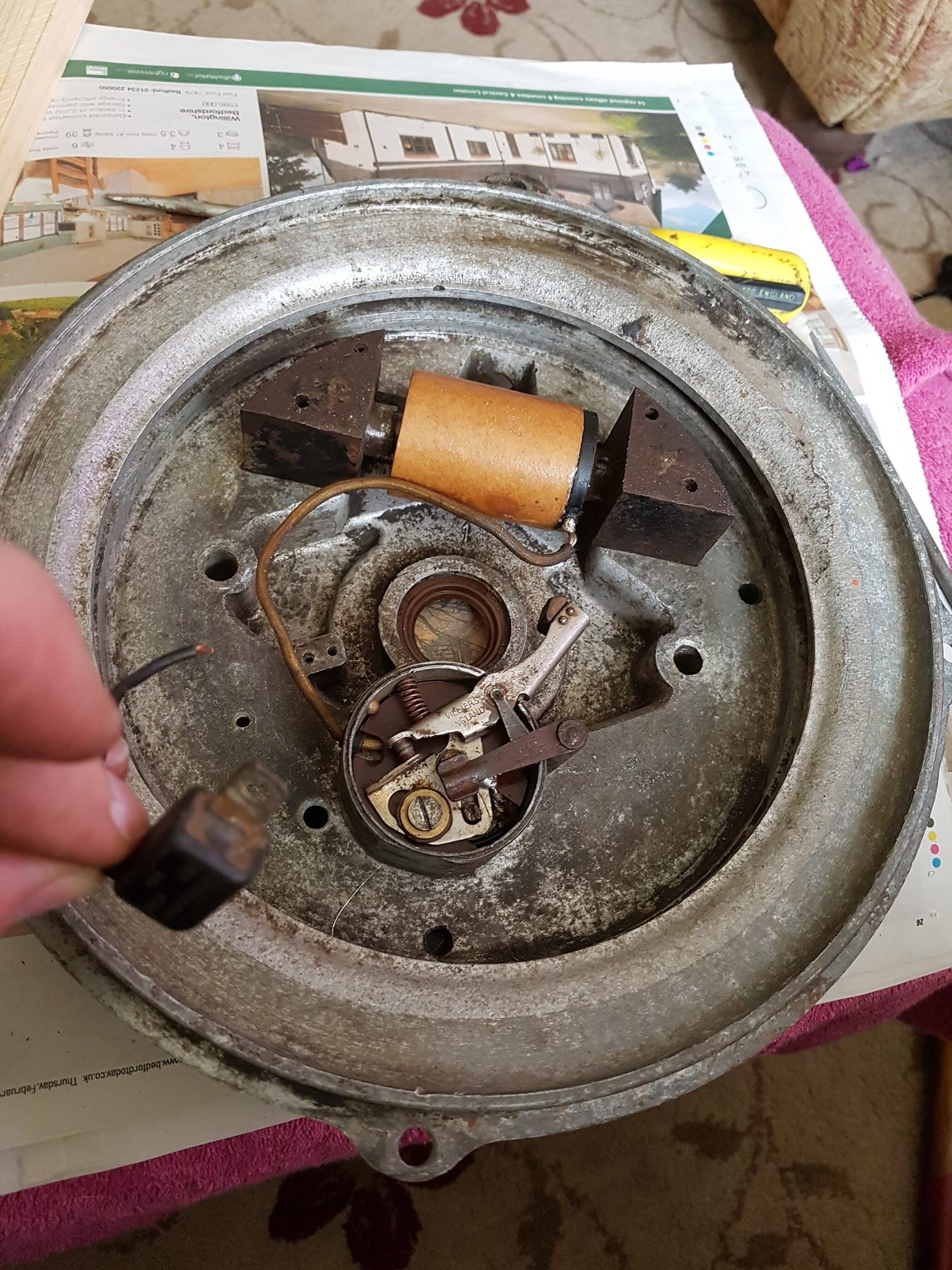 ParticipantThat looks like an electronic module , ….throw it away. If John has overhauled your ignition , you should be away in no time , I take it that he has fitted new coil and condenser.