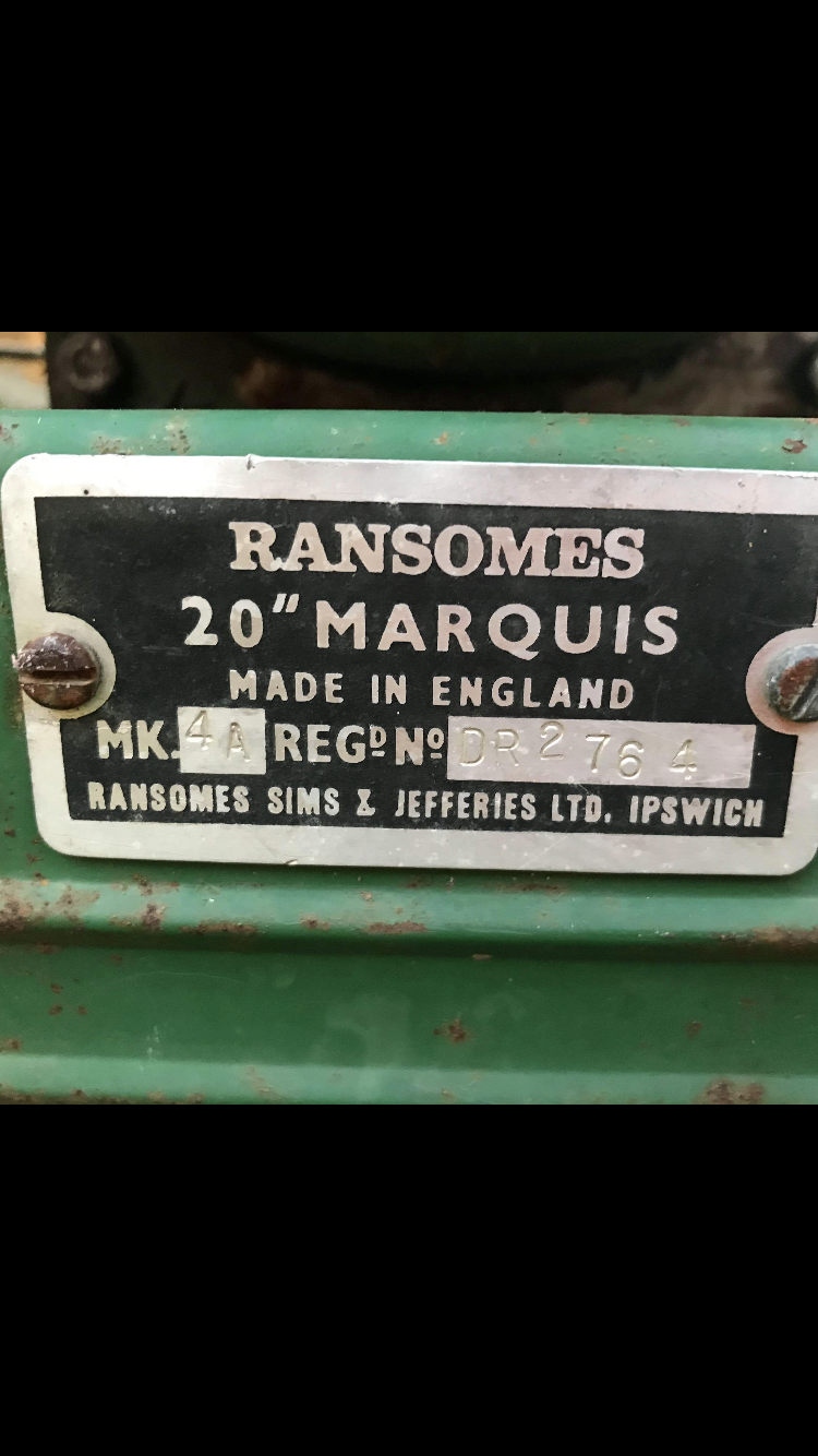 Your machine is a Ransomes Marquis 20 Inch model MK 4A, The 4A started production in August 1967 and ended in March 1974,