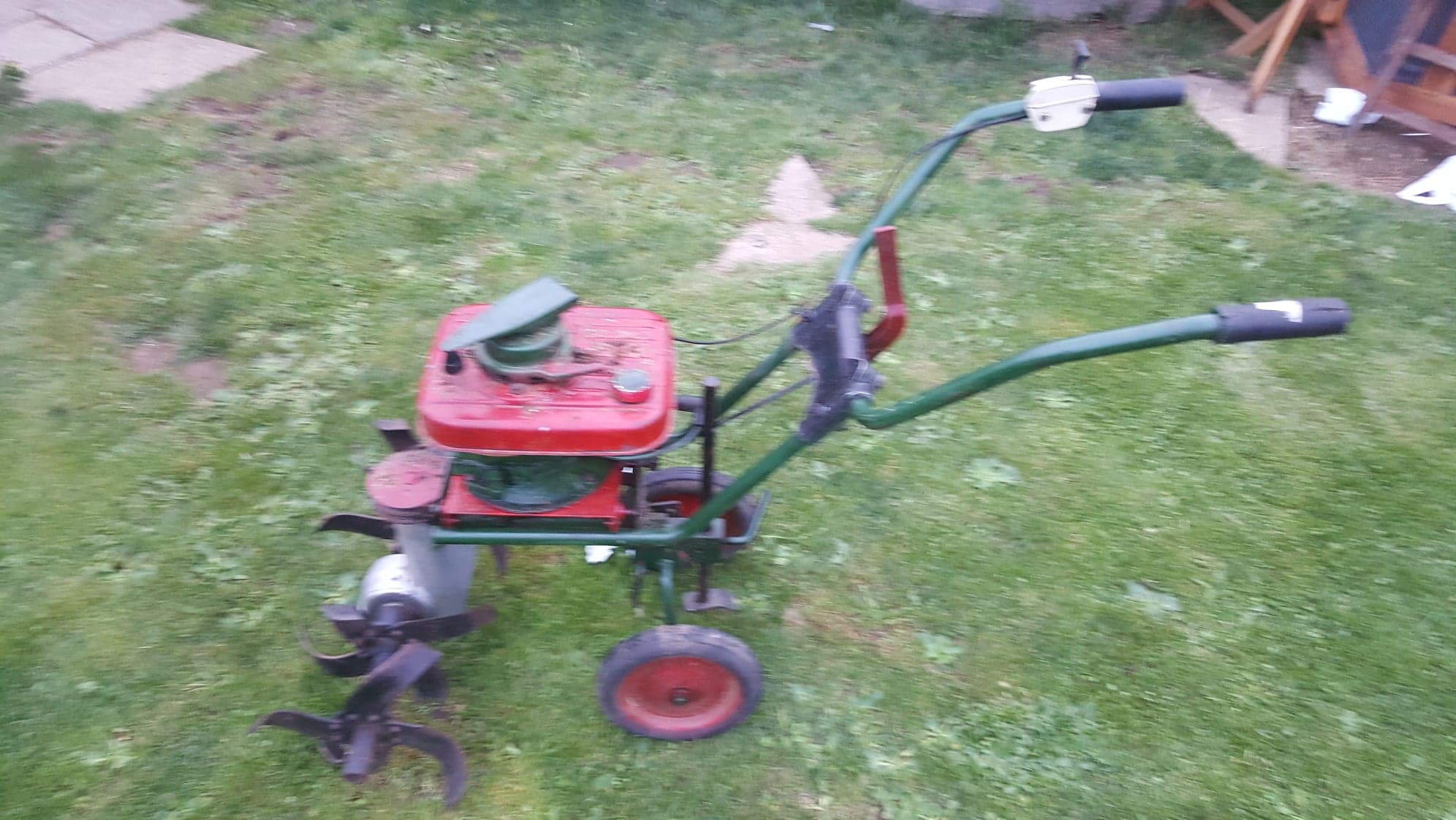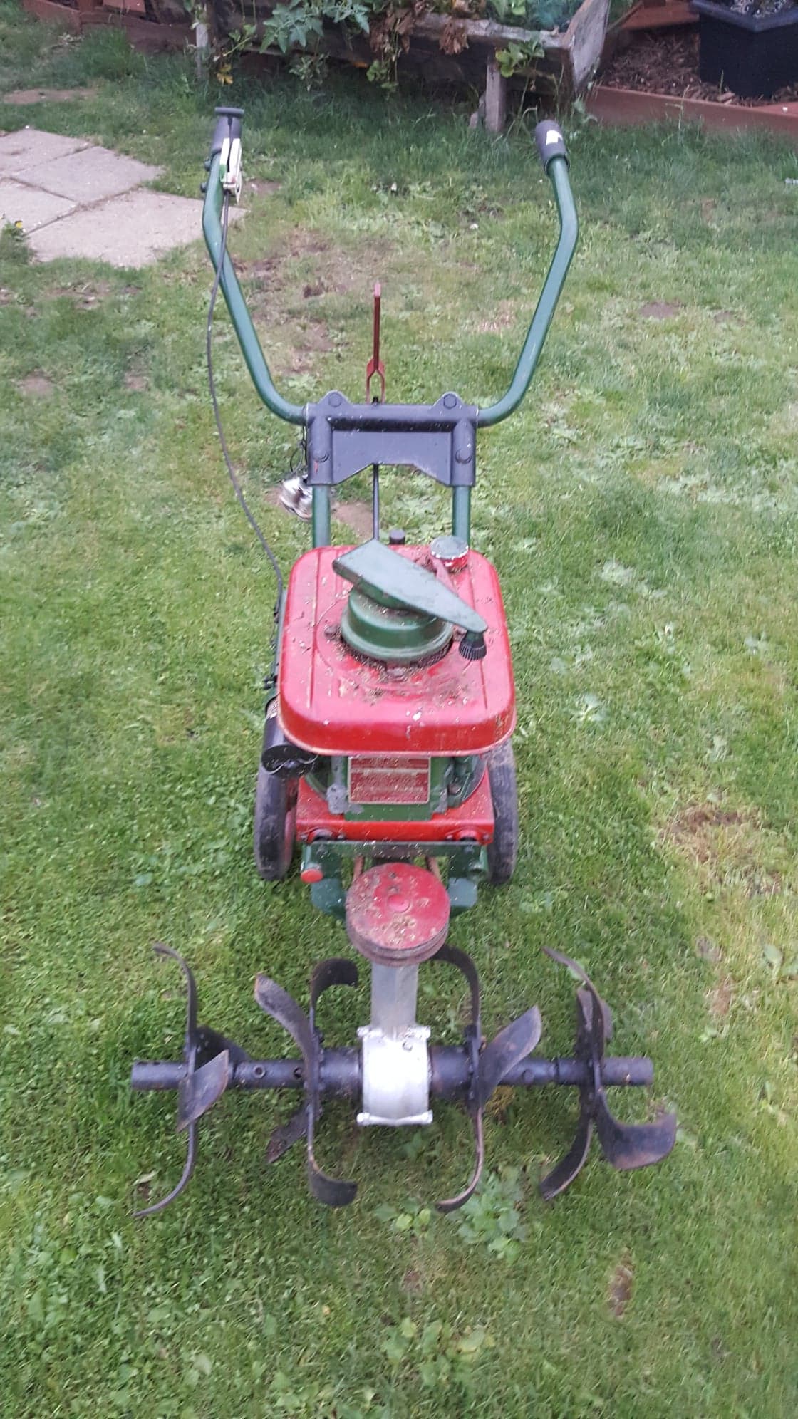 Reading through ’70 Years of Garden Machinery’ by Brian Bell, it looks as if your rotavator is an early Mountfield M1. These first appeared in 1962 and were fitted with the Kirby Lauson engine, later models had Briggs & Stratton engines.