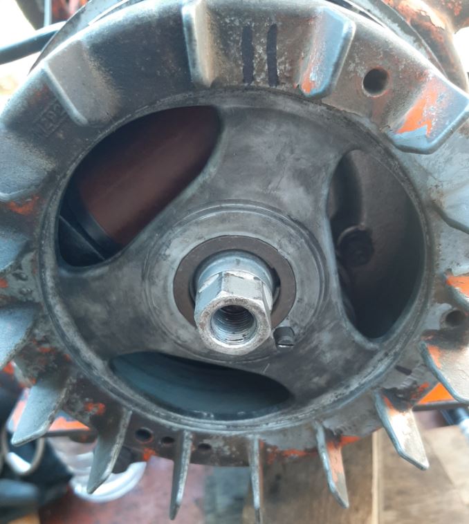 I have undone the 13/16 nut holding the flywheel rotor on but it clamps tight again, do I use this nut to pull off the flywheel rotor? I didn’t want to strip the thread so have been reluctant to lean on it and give it too much force. Should it be that tight and will go eventually?
